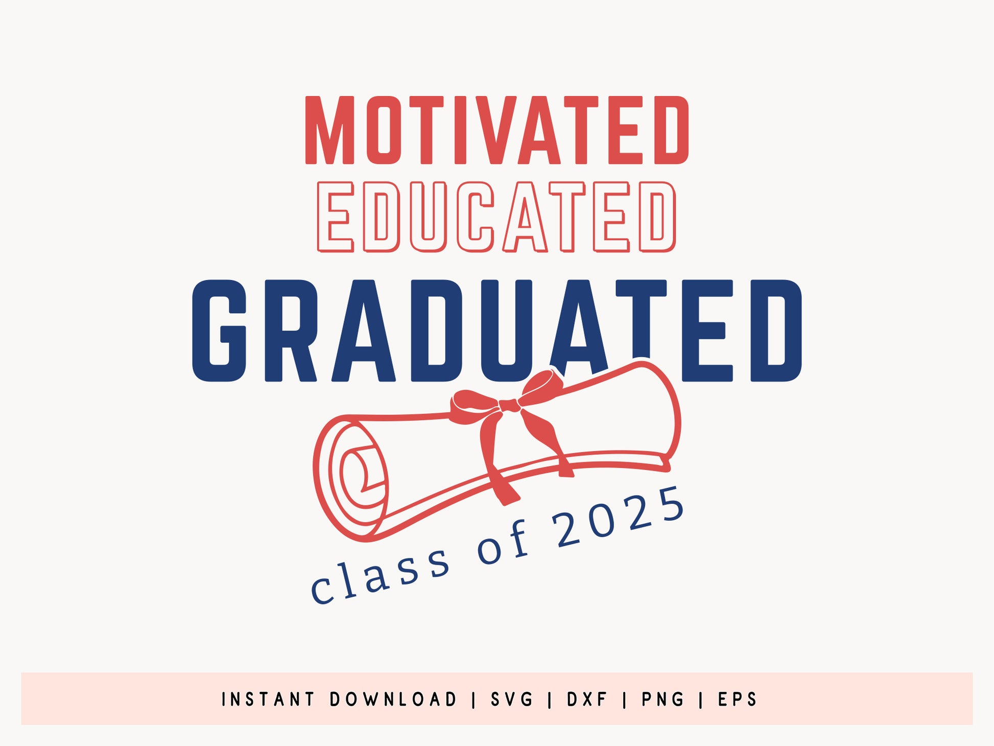 Check out our Motivated Educated Graduated Class of 2025 SVG Design! Whether you’re making shirts, mugs, signs, or party decorations, this versatile SVG will really make your graduation projects pop. It comes in SVG, DXF, EPS, and PNG formats, so it’s fully compatible with Cricut, Silhouette, and other cutting machines. You can personalize this Motivated Educated Graduated Class of 2025 SVG with names, school colors, or special messages to make your creation standout. The Motivated Educated Graduated Class of 2025 SVG is perfect for DIY gifts, keepsakes, and celebration decor that will leave a lasting impression. Add this Motivated Educated Graduated Class of 2025 SVG to your crafting collection and create unforgettable graduation projects that inspire pride and joy!