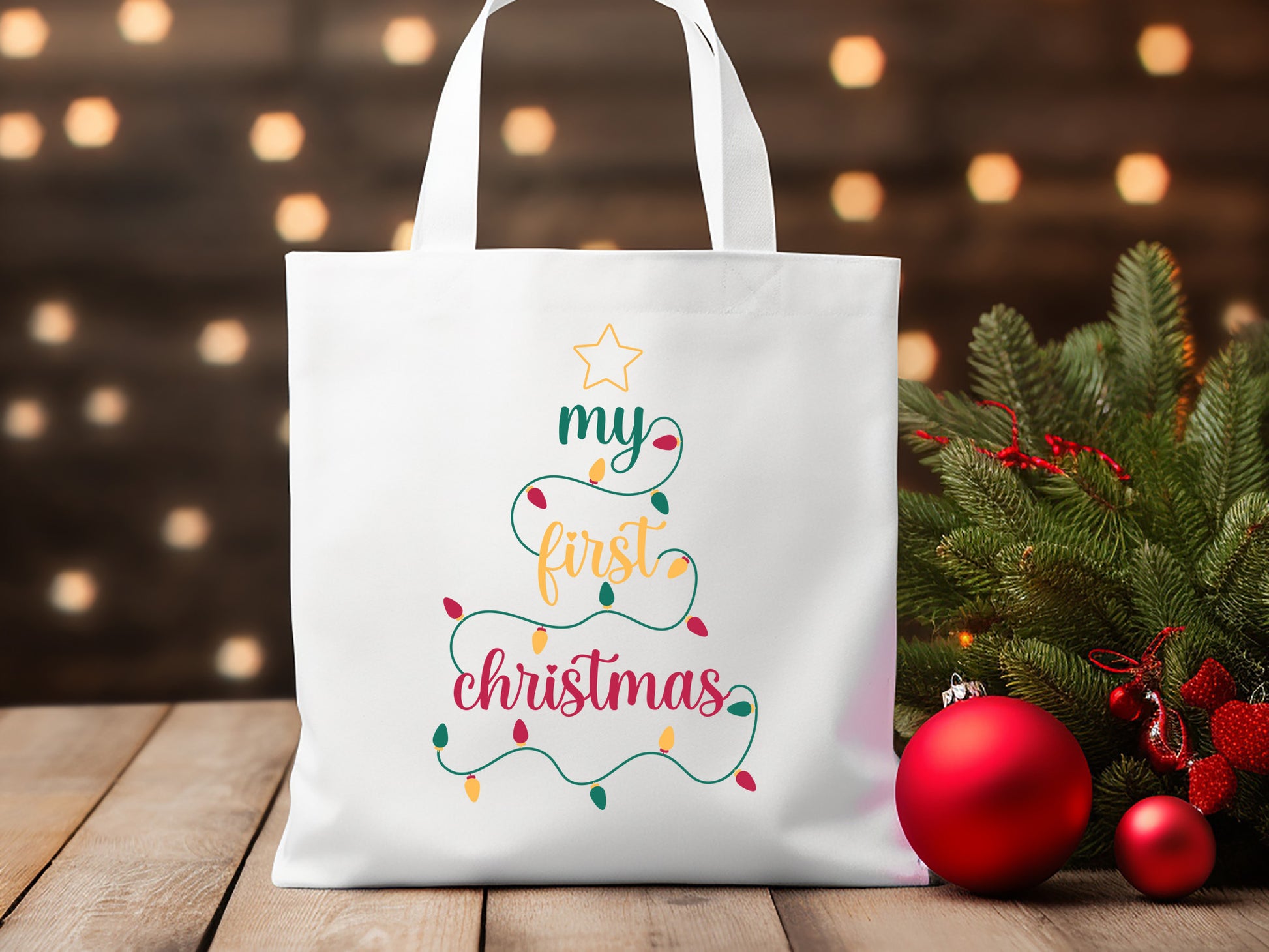 Take a look at our adorable My First Christmas SVG Graphic! Perfect for creating charming keepsakes for little ones, this Christmas SVG Graphic is ideal for baby outfits, personalized ornaments, and more. It includes a Christmas tree shape with colorful lights that'll elevate your kids projects. Great for Cricut, Silhouette, and other cutting machines, it ensures easy crafting for memorable holiday projects. Celebrate a baby's first Christmas with a heartfelt touch, adding warmth and charm to your holiday creations. Whether you're gifting or crafting for your own family, the My First Christmas design will make this special occasion even more unforgettable! Grab now.