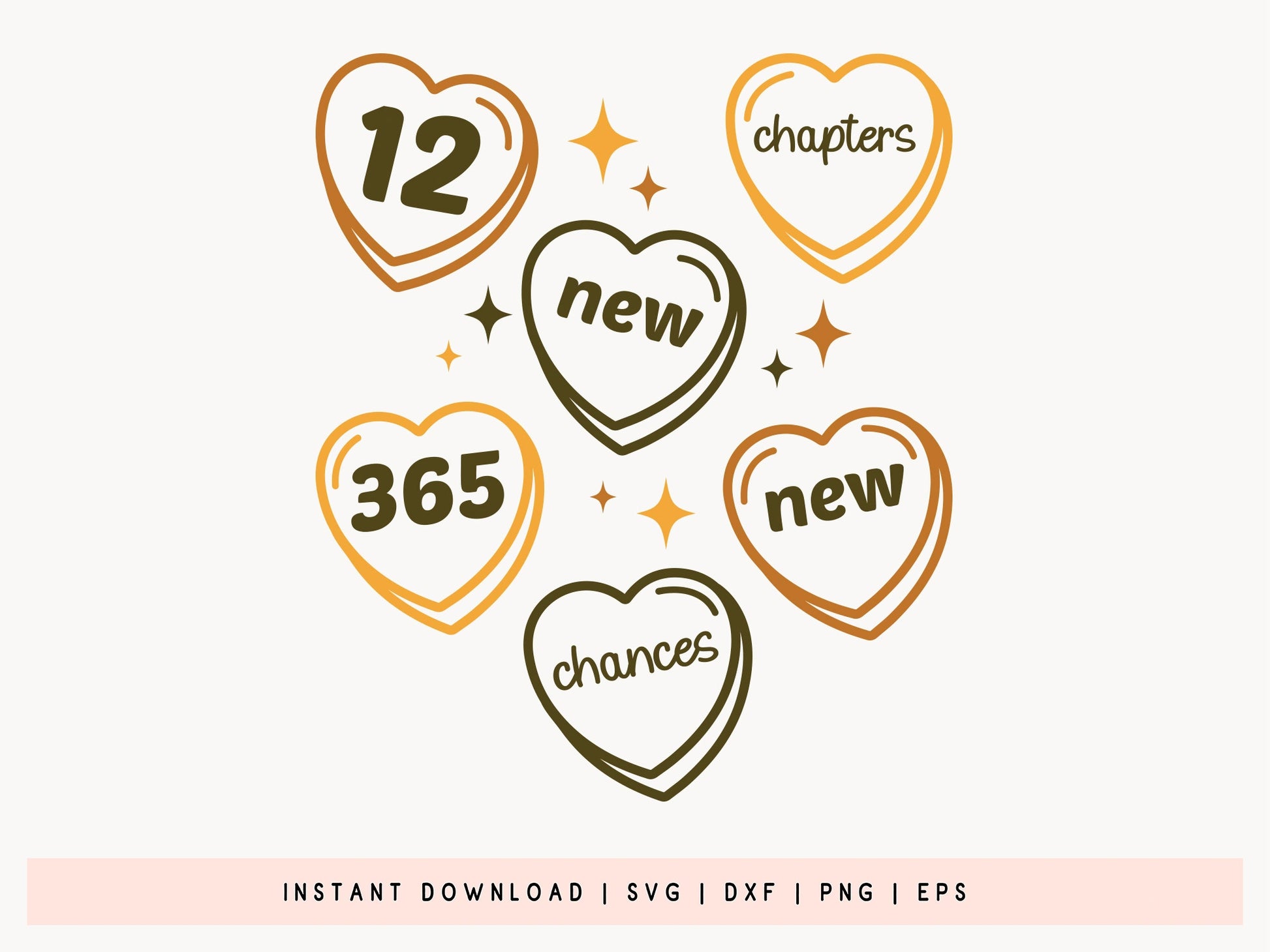 Take a look at our "New Year SVG File - "12 New Chapters 365 New Chances" design, perfect for marking fresh beginnings and setting intentions for the year ahead. Ideal for crafting shirts, mugs, totes, planners, journals, wall art, greeting cards, or personal gifts, this New Year SVG serves as a daily reminder to embrace each day with optimism and enthusiasm. With elegant typography and a motivational quote "12 New Chapters 365 New Chances," it adds a modern touch to any project. Used with Cricut, Silhouette, and other cutting machines, it’s simple to customize and make truly unique. Shop this New Year SVG File today!