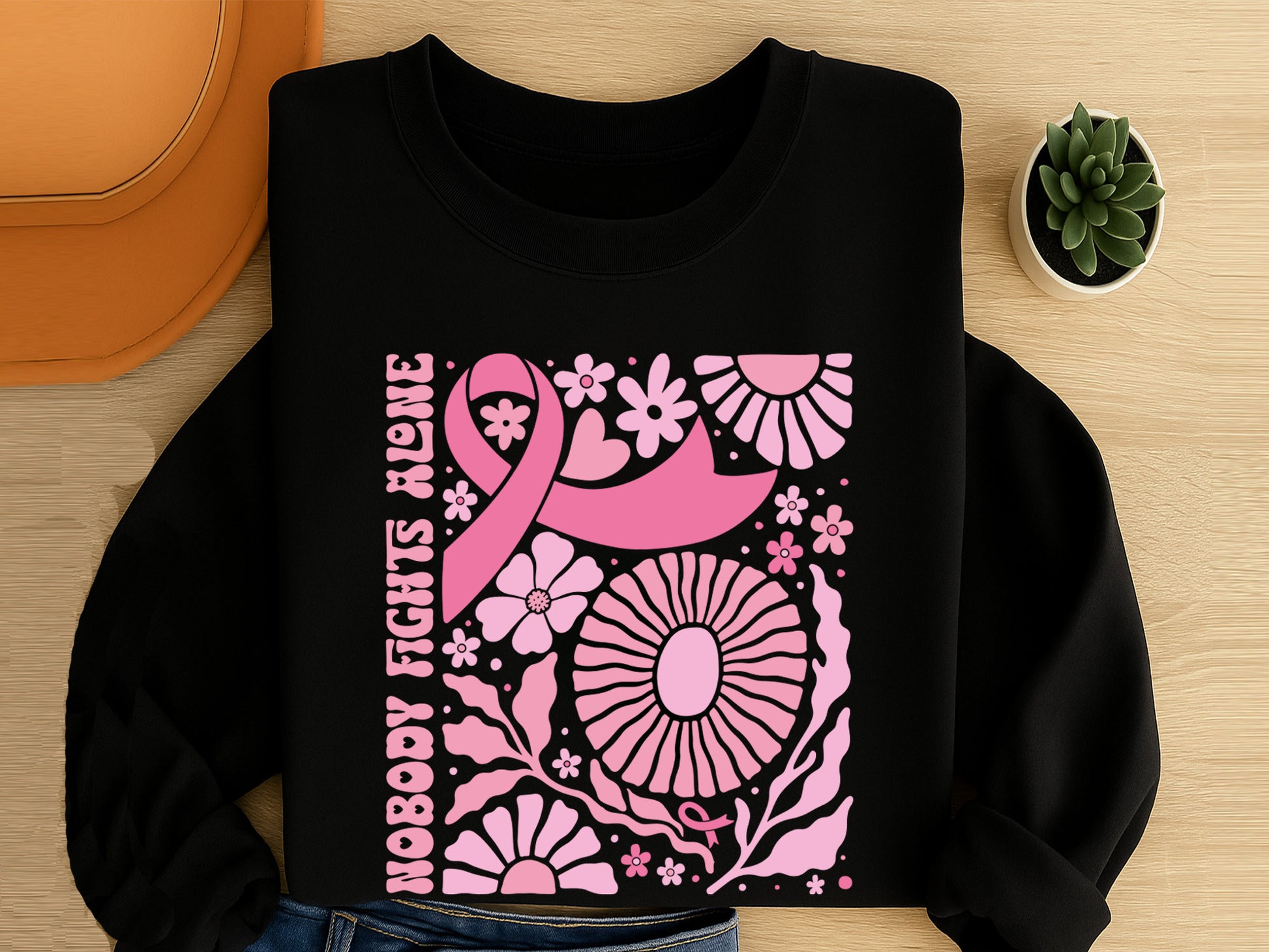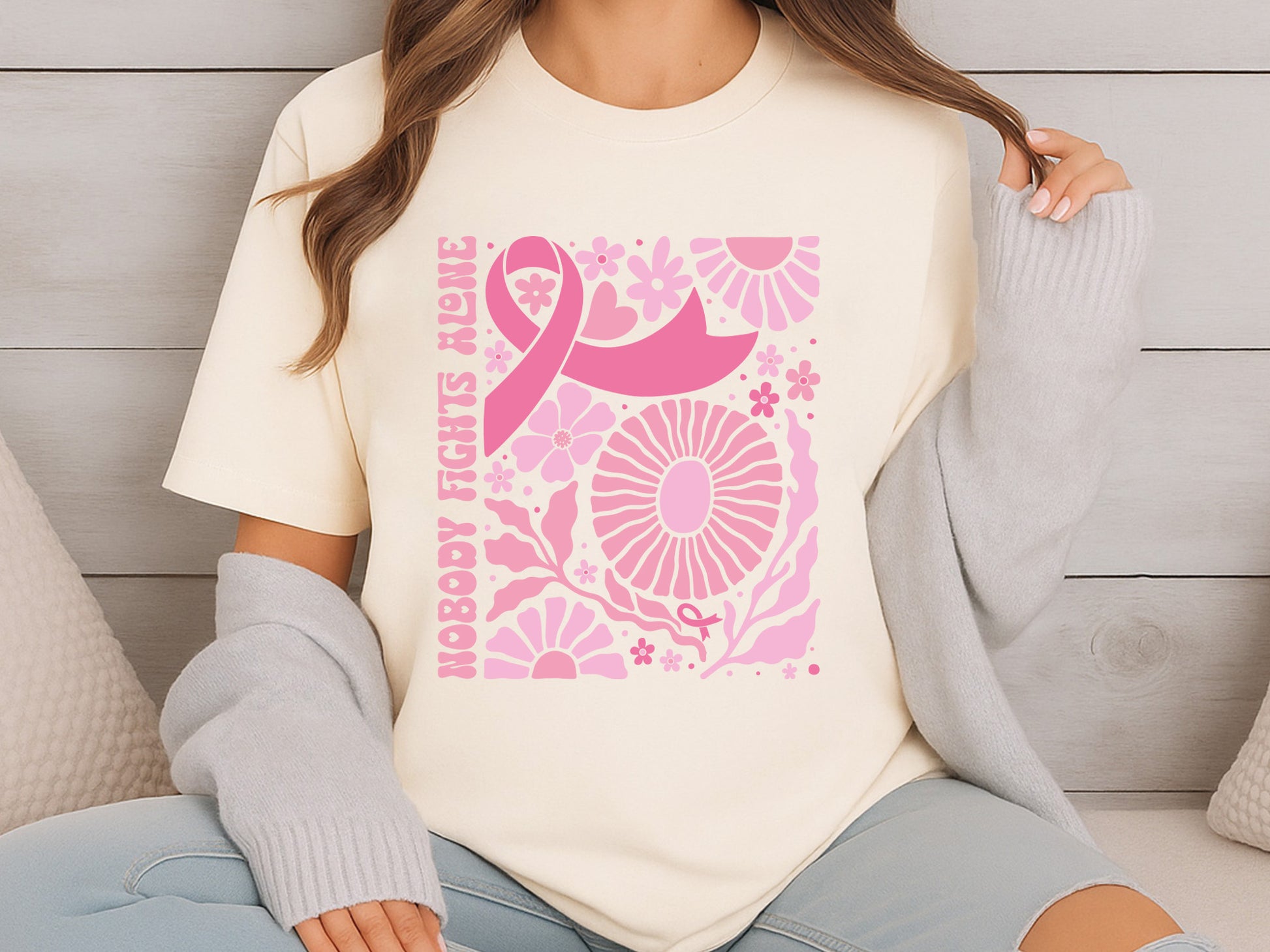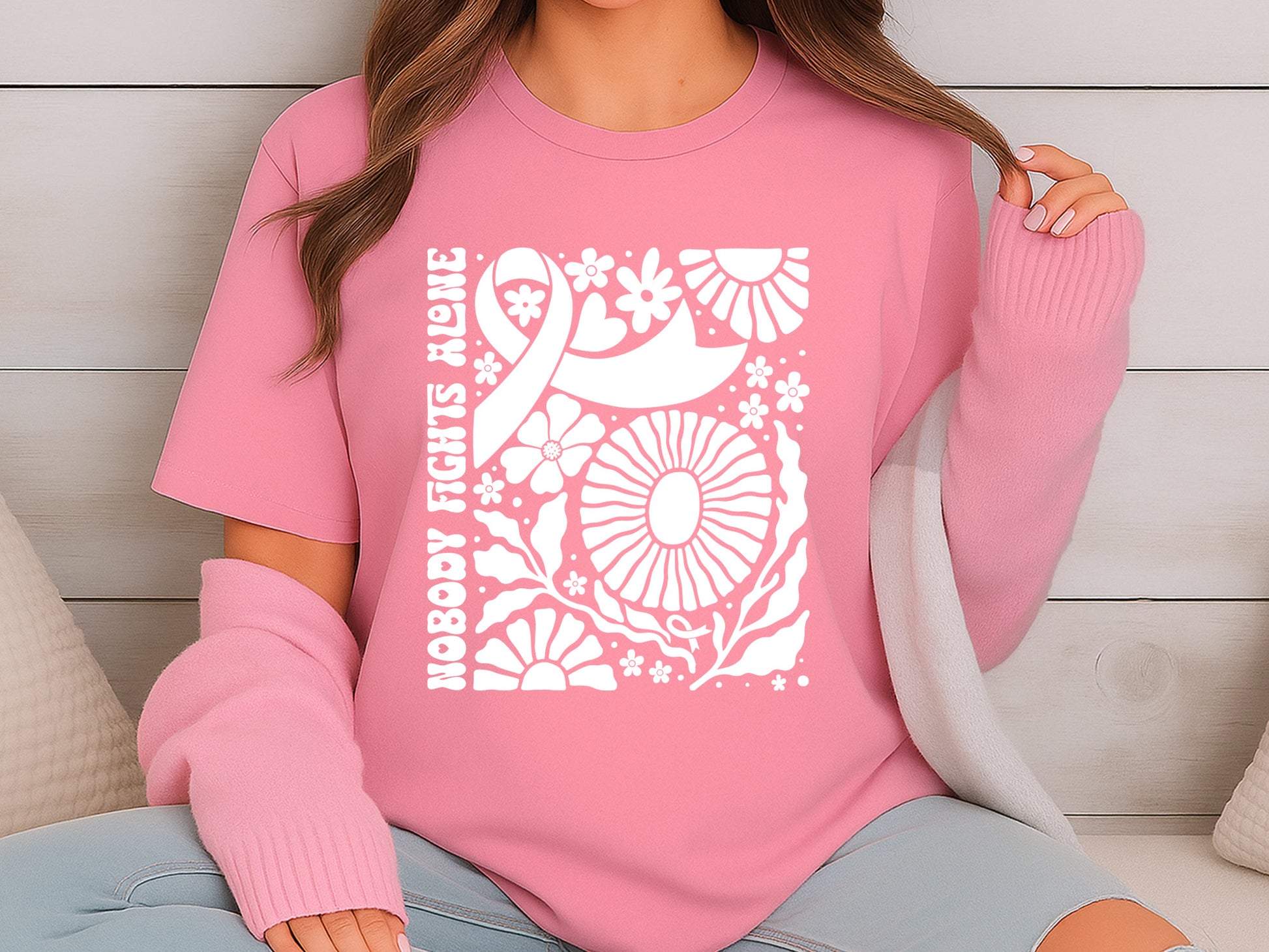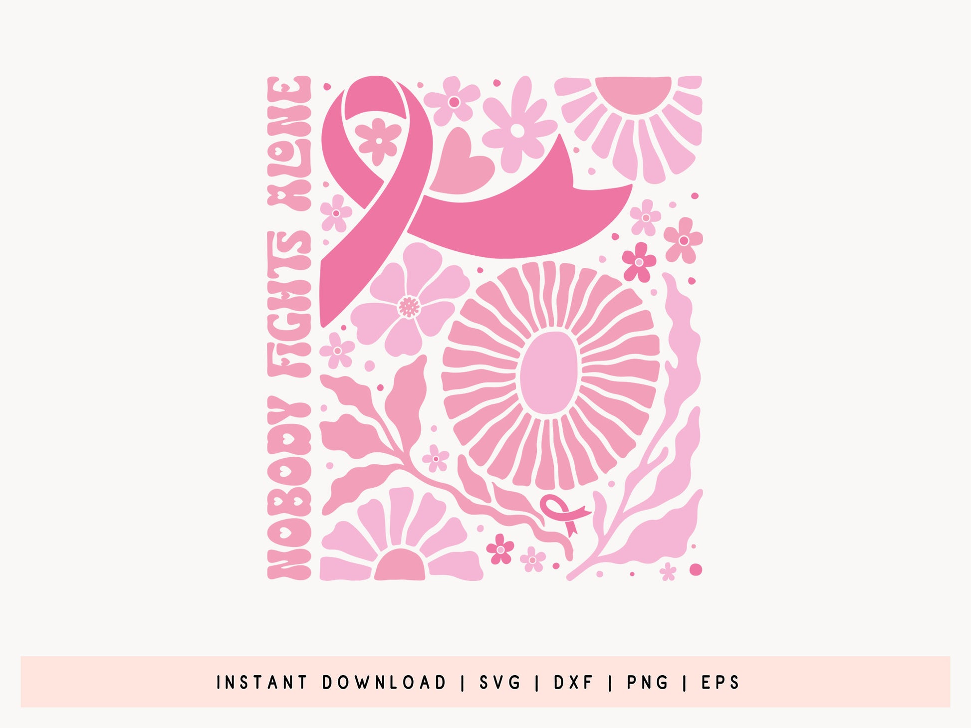 Nobody Fights Alone, Floral Breast Cancer Ribbon SVG