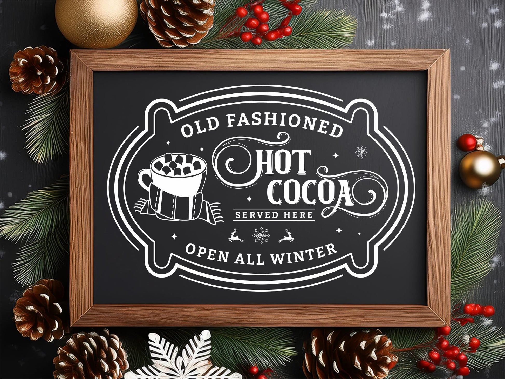 Download the adorable Old Fashioned Hot Cocoa Sign Design SVG! This high-quality design brings a vintage-inspired warmth to any hot cocoa bar, kitchen, or winter decor. It’s ideal for creating a rustic farmhouse sign or adding an old-fashioned touch to your holiday decorations. The SVG product is compatible with various cutters like Cricut, Silhouette, Vinyl, and more. Can be applied to wood, framed art, or glass, giving you flexible options for DIY holiday crafting. Whether used for personal decor or as a heartfelt gift, this "Old Fashioned Hot Cocoa" Design SVG is great for you. Warm up your space with festive, handcrafted vibes using the Hot Cocoa Sign Design SVG. Check it out now!