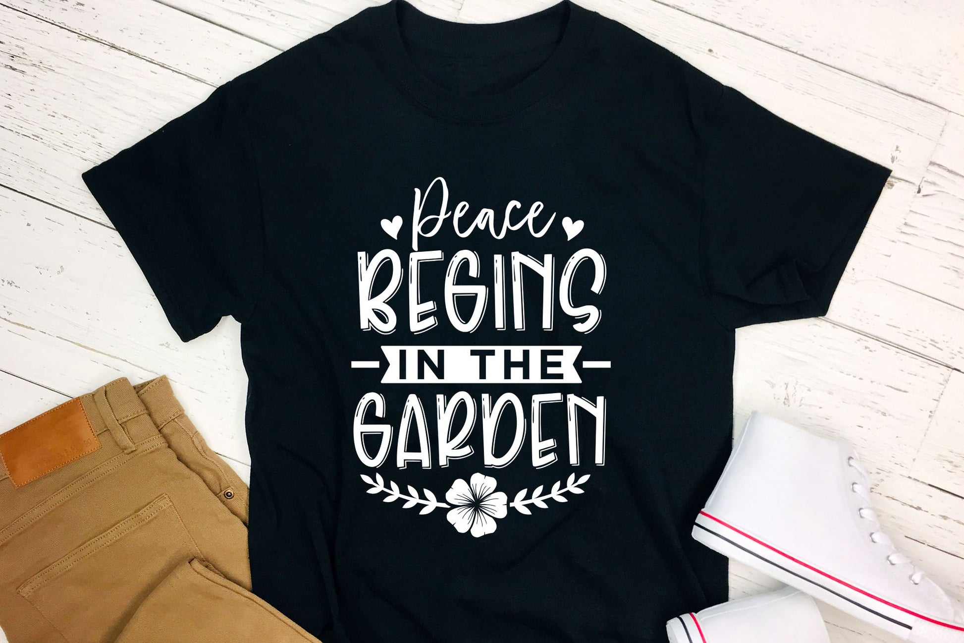 Browse our handcrafted Peace Begins in the Garden - Gardening SVG design. This unique graphic is a dream come true for plant lovers, garden enthusiasts, and anyone who finds joy in getting their hands dirty. Whether you're making garden signs, t-shirts, tote bags, or home decor, the Gardening SVG brings a serene vibe to every project. It comes in SVG, DXF, PNG, and EPS formats, making it a breeze to use with Cricut, Silhouette, and other cutting machines. Perfect for DIY gifts, market crafts, or just for your own enjoyment, this Gardening SVG showcases your love for nature in style. No matter if you're just starting out or you're a seasoned pro, our Gardening SVG is bound to shine in any project you take on.