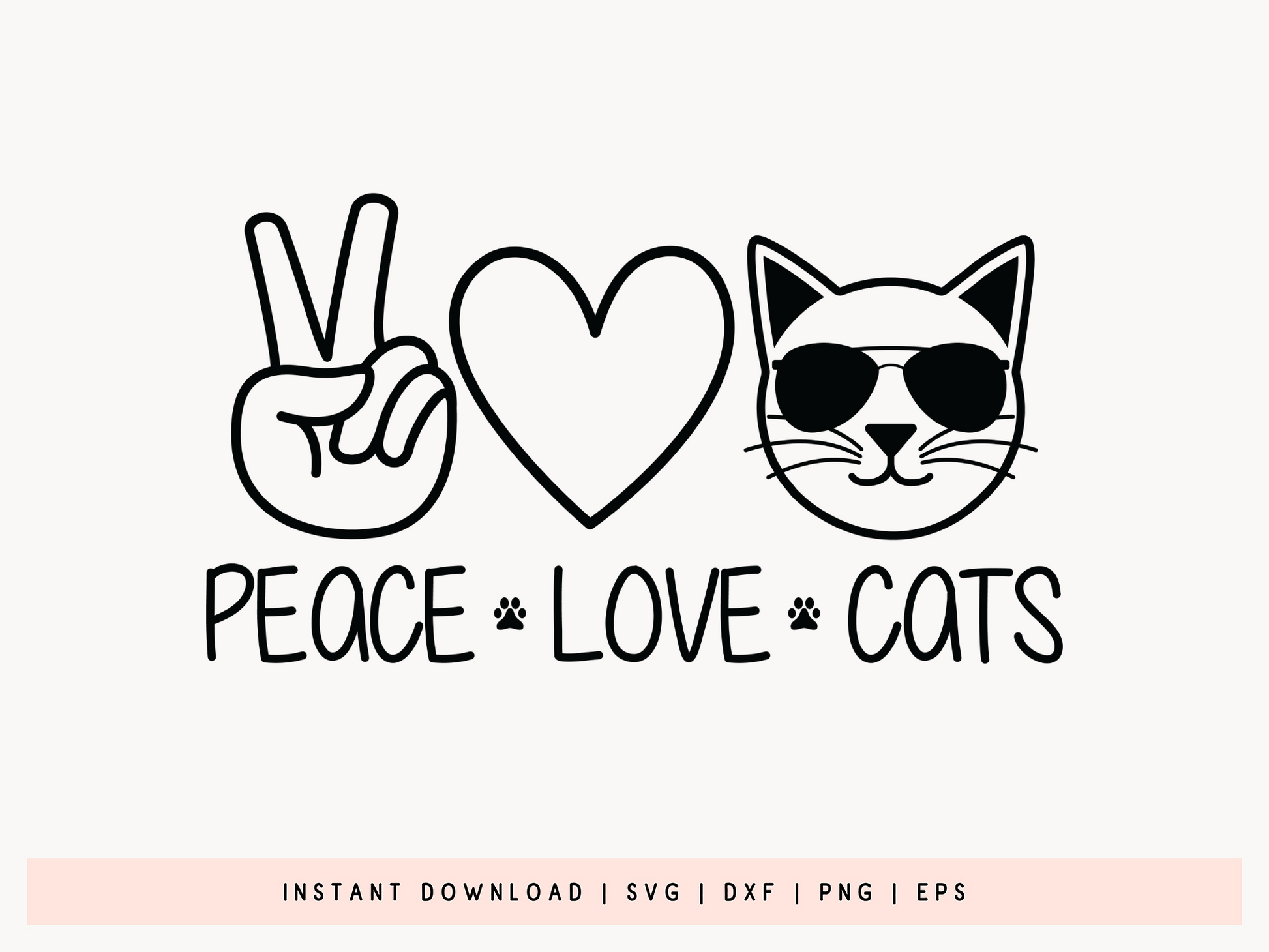 Look at the Peace Love Cats SVG Silhouette design, an absolute dream for cat enthusiasts and crafty folks alike. It includes an adorable kitty face alongside a heartwarming quote. Whether you're making t-shirts, mugs, tote bags, or sprucing up your home décor, this Cat SVG Silhouette adds character and charm to every creation. Designed with versatility in mind, it comes in SVG, DXF, PNG, and EPS formats, ensuring it's a perfect match for Cricut, Silhouette, and other cutting machines. Whether you're a newbie or a seasoned pro, it's super easy to personalize to fit your taste. From thoughtful gifts to everyday projects, this Cat SVG Silhouette is just the purr-fect finishing touch!