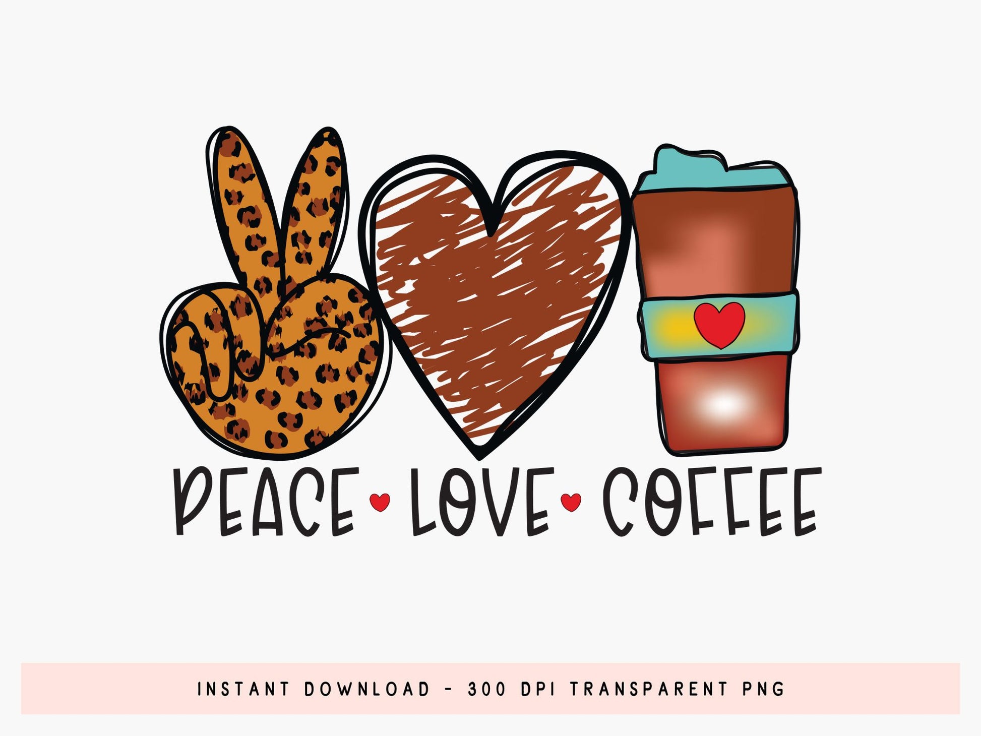 The Peace Love Coffee Sublimation Print design is a perfect companion for all coffee enthusiasts. This high-quality graphic is designed at 300 DPI and comes with a transparent background. Our Peace Love Coffee Sublimation is a fantastic choice for mugs, t-shirts, tumblers, tote bags, and so much more. Whether you're crafting gifts or working on personal projects, this Peace Love Coffee Sublimation design adds a splash of charm and energy to every creative project. It works seamlessly with all major design software and sublimation printers, ensuring easy use and stunning, vibrant results. Show off your love for coffee with style using this trendy Peace Love Coffee Sublimation design. Grab now!