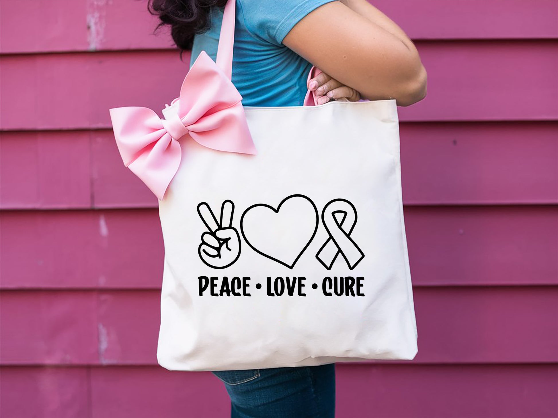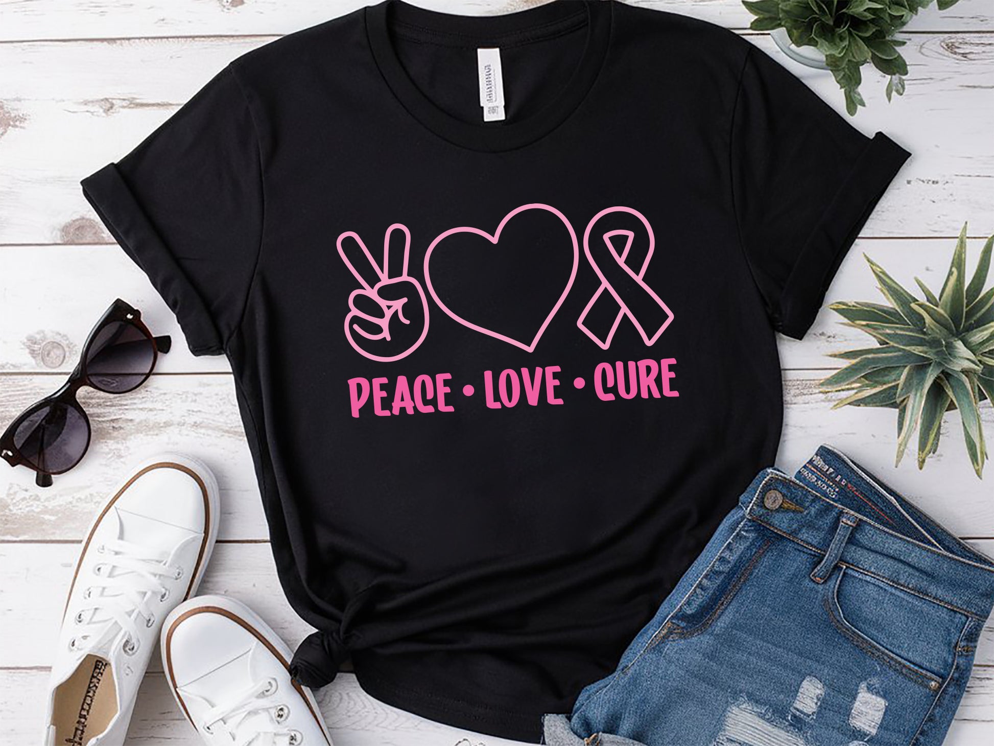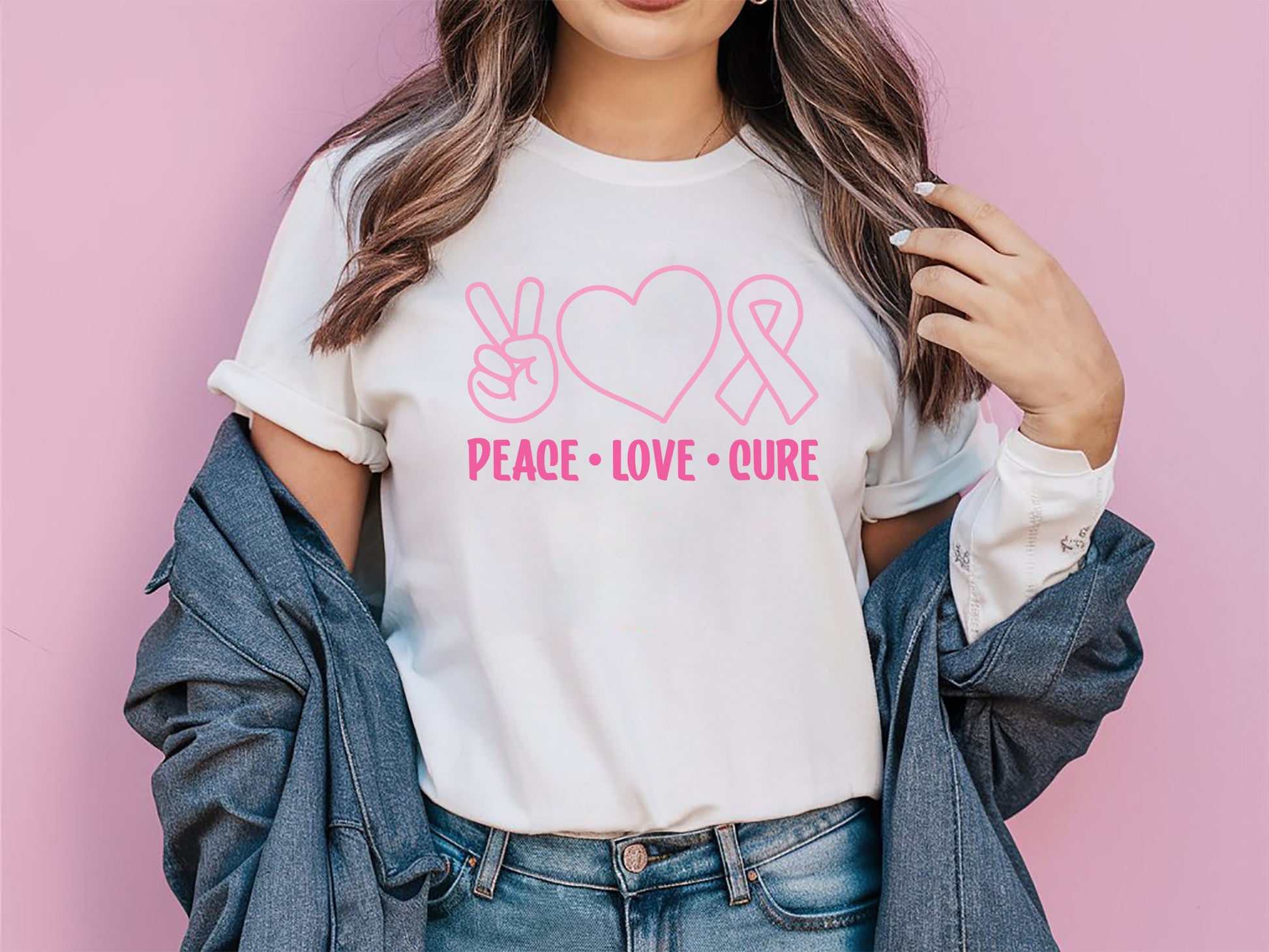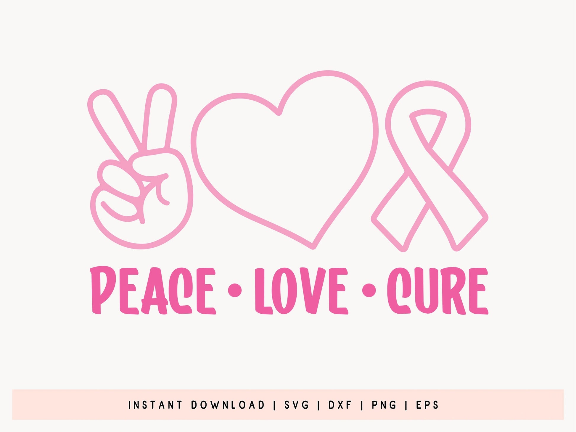 Purchase our "Peace Love Cure - Breast Cancer SVG"! This specially crafted design is ideal for crafters and DIY enthusiasts who want to show their support for breast cancer awareness. The high-quality graphic showcases a peace sign, a heart, and a pink ribbon arranged horizontally, making it easy to incorporate into a wide range of projects. Whether you're customizing T-shirts, mugs, tote bags, sweatshirts, or greeting cards, this versatile SVG allows you to create personalized items that demonstrate your solidarity with those impacted by breast cancer. Don't miss out on the opportunity to raise awareness and show your support. with "Peace Love Cure" deign. Get now this Breast Cancer SVG today and start making impactful, awareness-themed products.