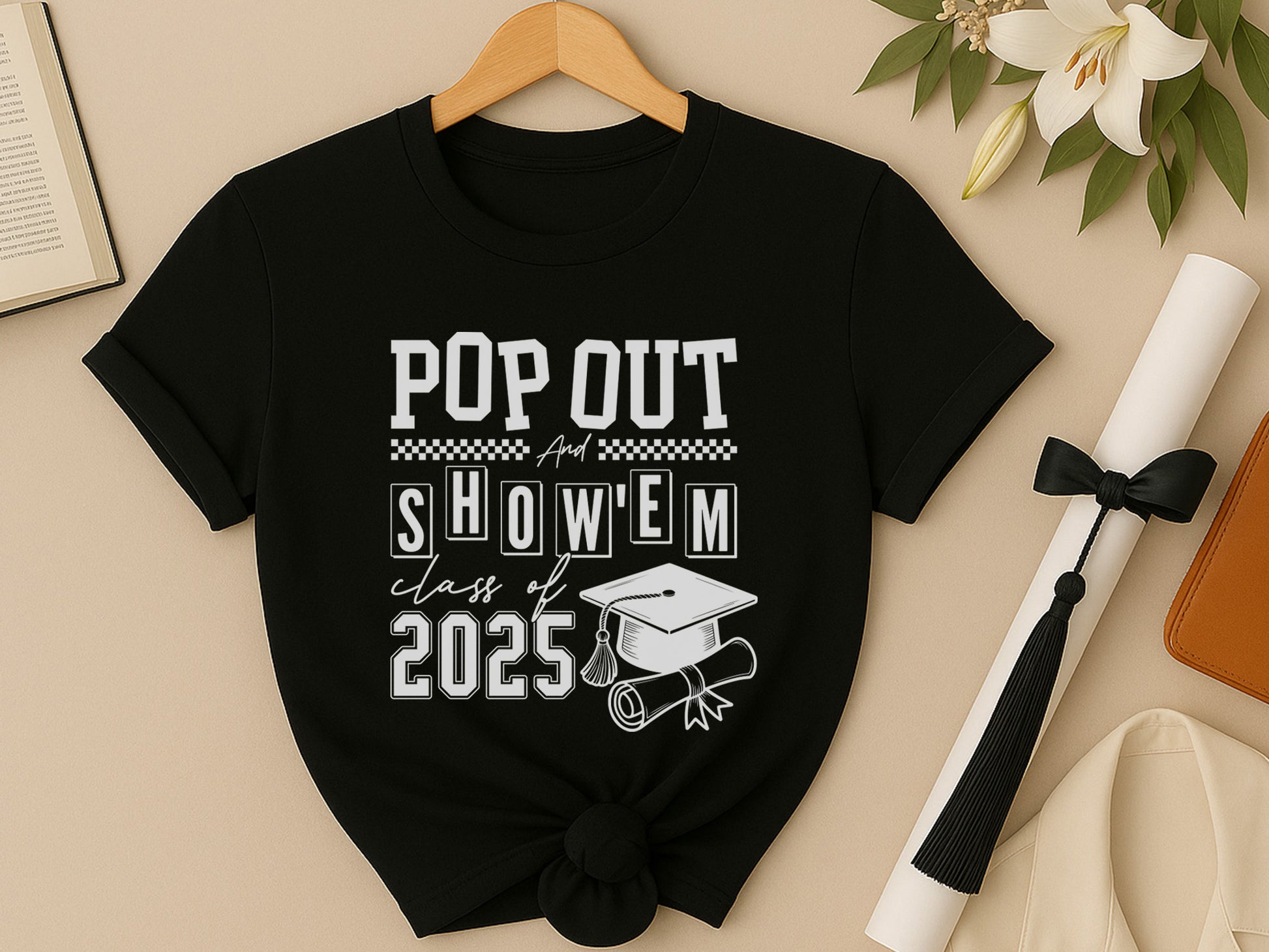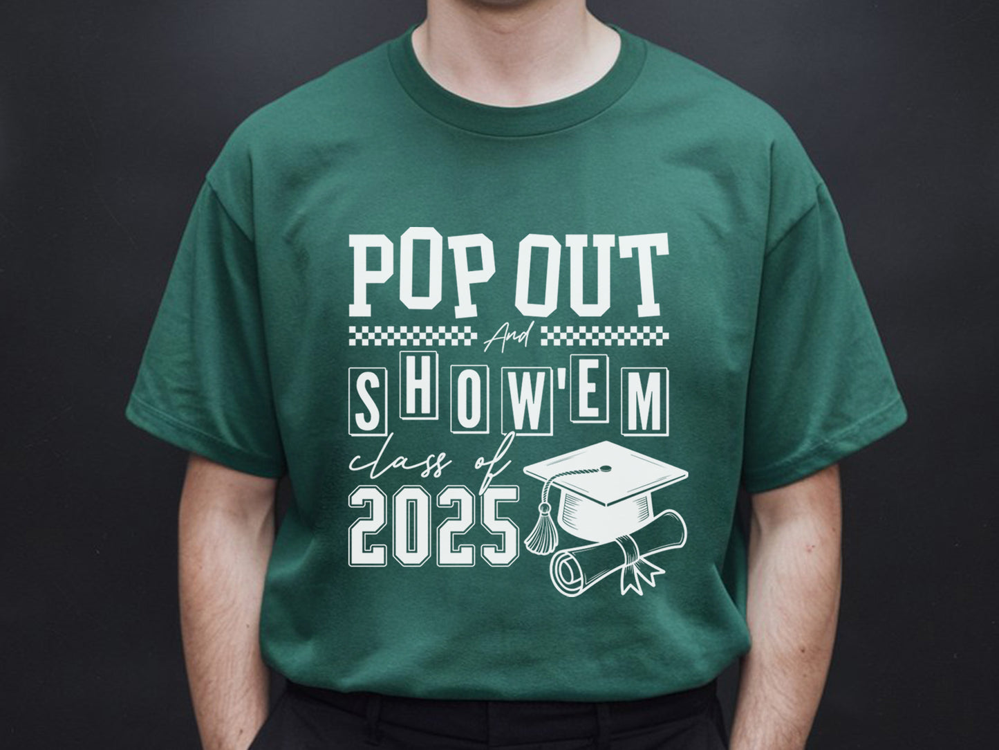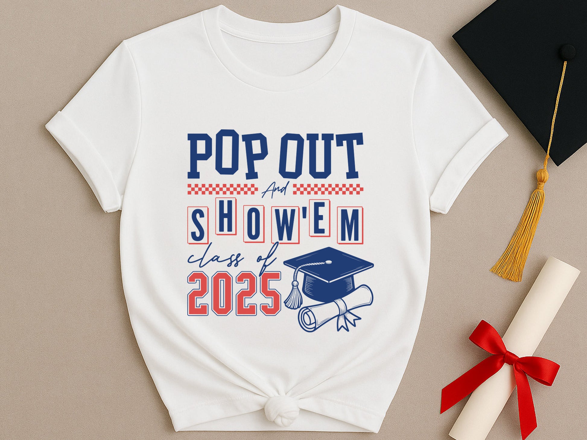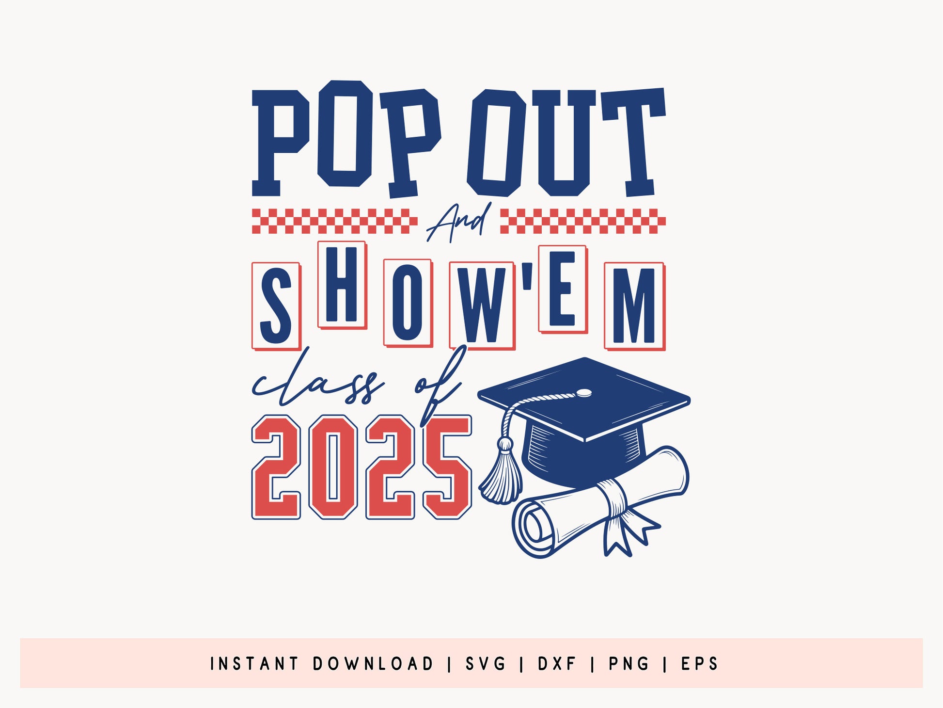 Browse our Pop Out and Show'em Class of 2025 SVG Vector! This vibrant and customizable design is just what you need to create eye-catching Class of 2025 shirts, banners, tumblers, and so much more. Whether you're celebrating seniors, hosting a graduation bash, or crafting memorable keepsakes, the Pop Out and Show'em Class of 2025 SVG adds a burst of energy and personality to every project. It comes in SVG, DXF, EPS, and PNG formats, so it's compatible with Cricut, Silhouette, and other cutting machines. You can even personalize it with school colors or student names for that extra special touch. With its bold lettering and stylish layout, the Pop Out and Show'em Class of 2025 SVG is perfect for DIY gifts, apparel, and graduation decorations!