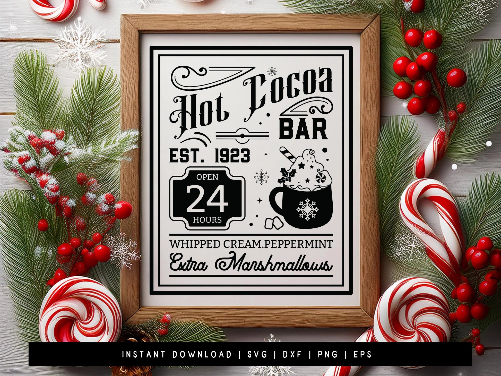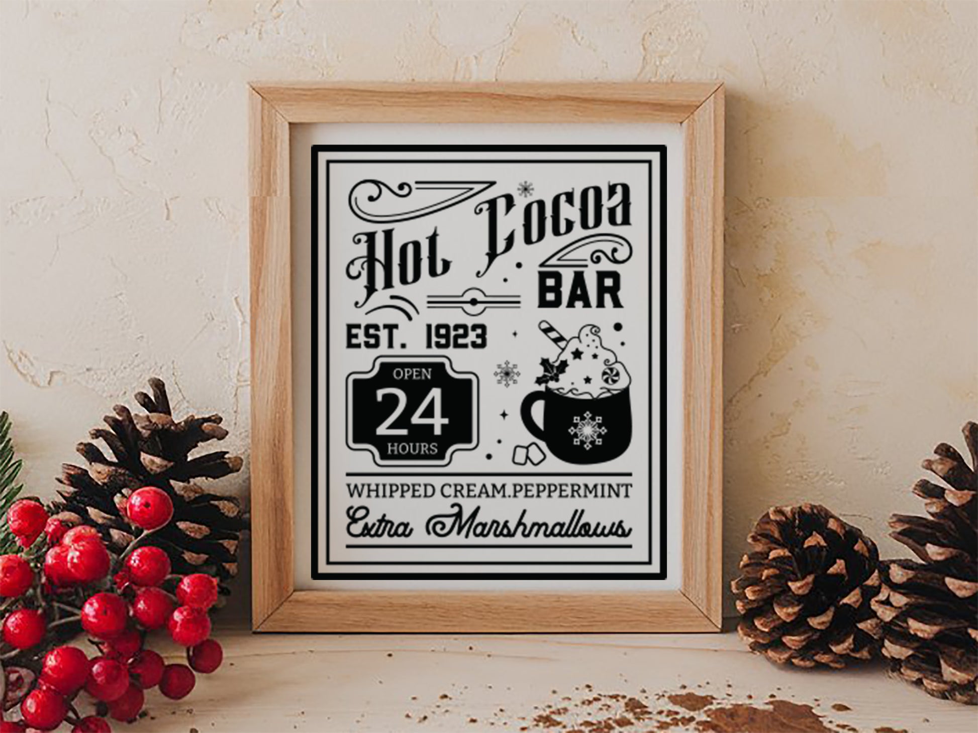 Create an inviting winter setup with the Printable Hot Cocoa Bar Sign SVG File! Ideal for making cozy wood signs, home decor, and more. This versatile design is perfect for adding a charming touch to your hot cocoa station. With whimsical typography and seasonal accents, it’s great for creating prints or signs for parties, kitchens, or holiday gatherings. The high-resolution, printable Hot Cocoa Sign SVG file works perfectly with various cutters like Cricut or Silhouette, allowing you to personalize wood, glass, or framed prints with ease. Perfect for festive gatherings or family hot cocoa nights, this printable sign adds warmth to any space. Download now!