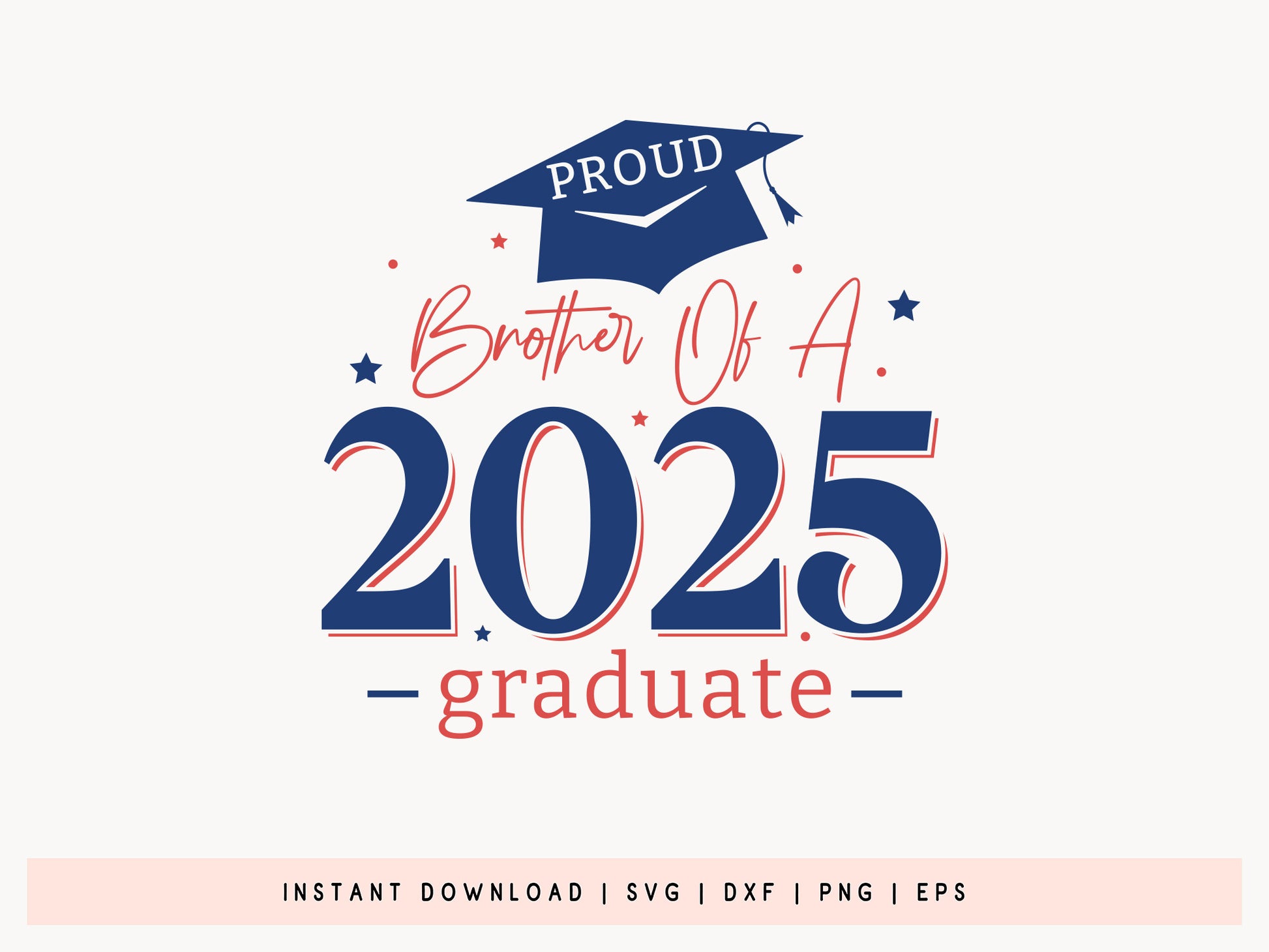 Get ready to celebrate with our Proud Brother of a 2025 Graduate SVG design! This charming design is perfect for brothers who want to proudly display their sibling pride during this important milestone. It's fully customizable, available in SVG, DXF, EPS, and PNG formats, making it compatible with Cricut, Silhouette, and other cutting machines. Whether you're creating a personalized t-shirt, hoodie, banner, or a memorable keepsake for graduation day, this Proud Brother of a 2025 Graduate SVG file provides a sleek, professional look that really pops. It's ideal for DIY gifts, party decorations, or festive apparel, offering a fun and meaningful way to be part of the celebration. Show your support and pride with the Proud Brother of a 2025 Graduate SVG. View now!