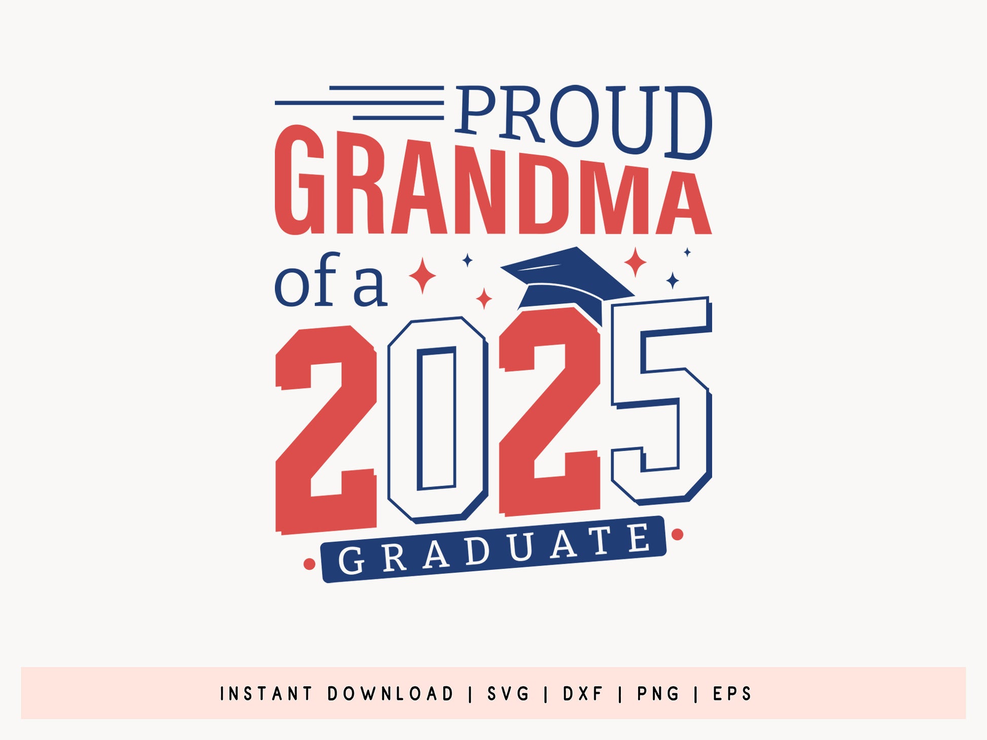 Discover the Proud Grandma Of A 2025 Graduate SVG - a must-have design for this year's graduation festivities! This touching design is perfect for any grandma eager to celebrate their big achievement. It's fully customizable and super easy to tweak, available in SVG, DXF, EPS, and PNG formats, so it works seamlessly with Cricut, Silhouette, and other cutting machines. Whether you’re creating a t-shirt, hoodie, banner, or a special graduation keepsake, this Proud Grandma of a 2025 Graduate SVG file offers a crisp, professional appearance that really stands out. It’s perfect for DIY gifts, party decorations, or celebratory gear-an enjoyable and meaningful way to participate in the festivities. Show your pride and support with the Proud Grandma of a 2025 Graduate SVG.
