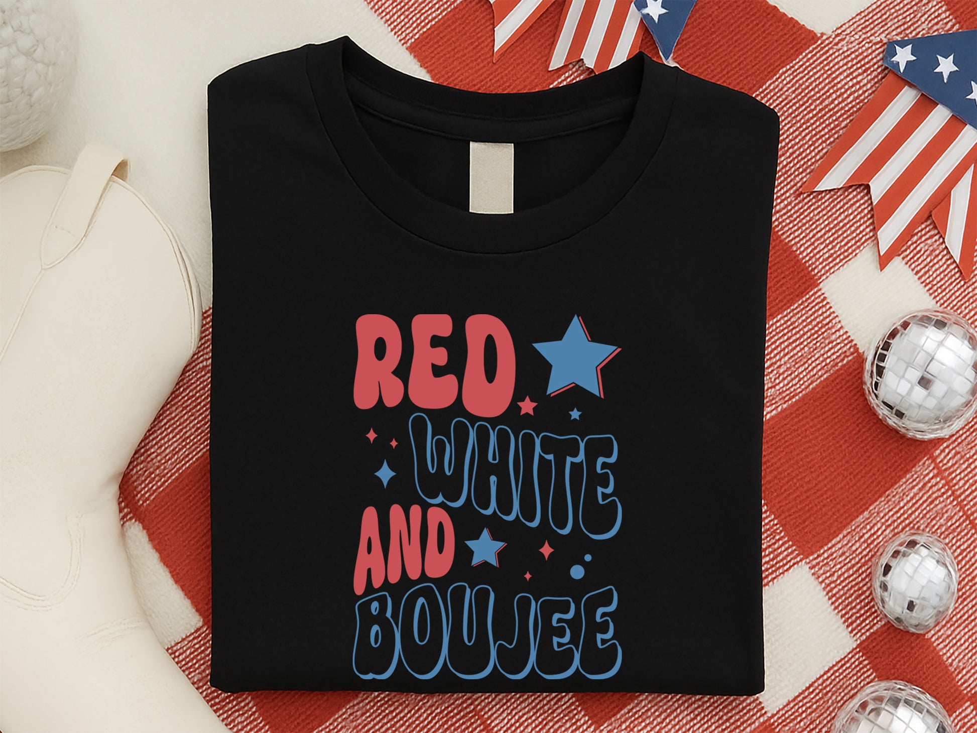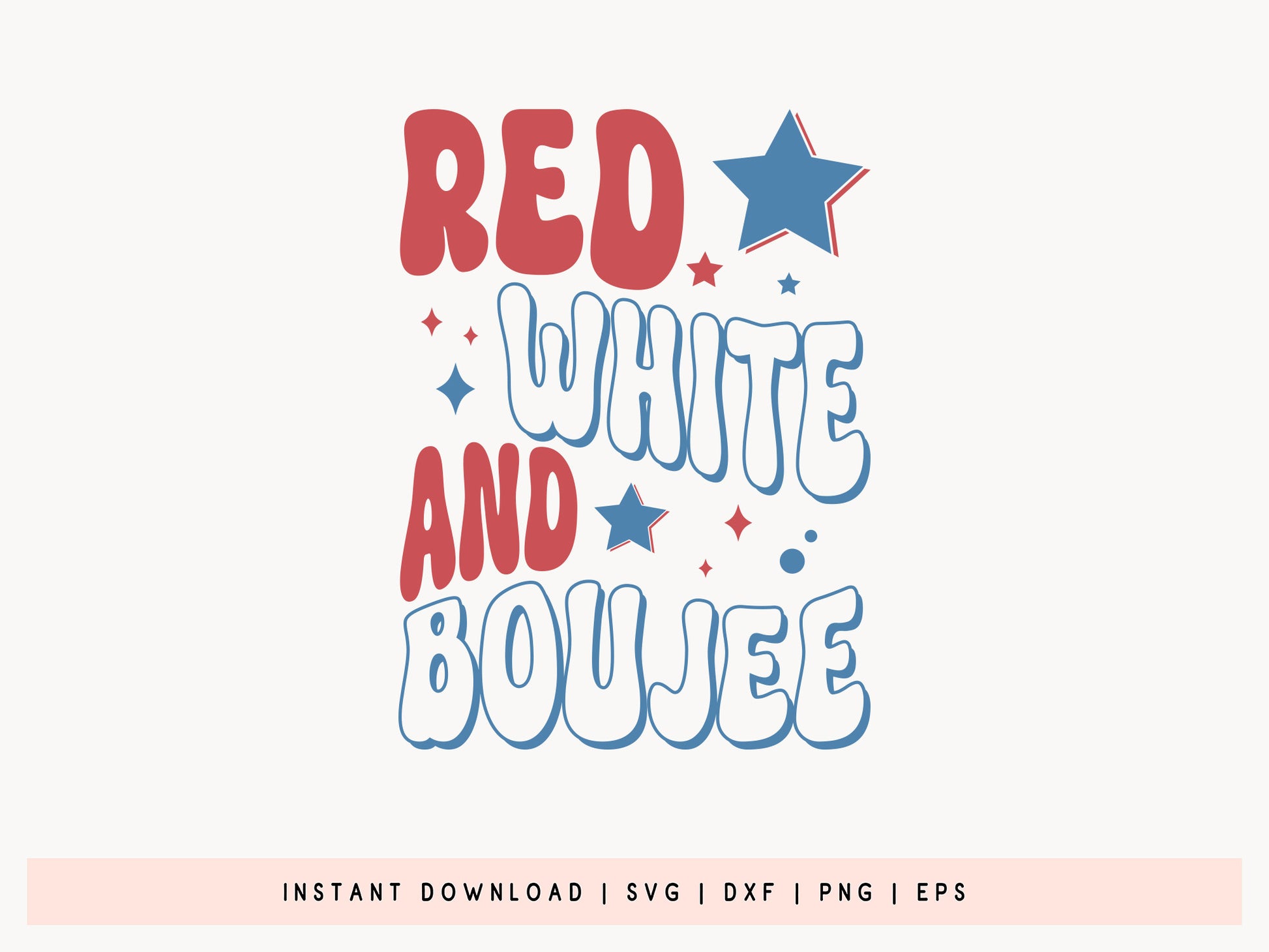 The Red White and Boujee – Fourth of July SVG is the perfect way to add a touch of flair to all your patriotic projects. This creative design is just what you need for t-shirts, tote bags, party decorations, and so much more. Whether you're celebrating with friends, enjoying a parade, or throwing a backyard BBQ, our Fourth of July SVG will have you crafting in style. It's compatible with Cricut, Silhouette, and other cutting machines, and comes in SVG, DXF, PNG, and EPS formats. Fun, fabulous, and made for those who love to stand out, this trendy Fourth of July SVG is a must-have for your collection. Create unforgettable looks and gifts, whether you're going all out at the fireworks show or making a DIY fashion statement. Grab now!