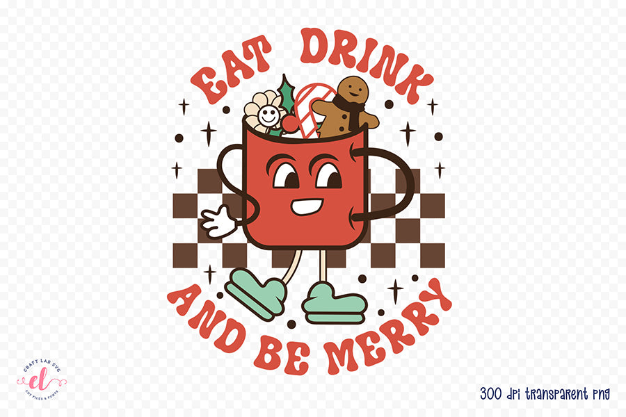 Retro Christmas Eat Drink and Be Merry PNG