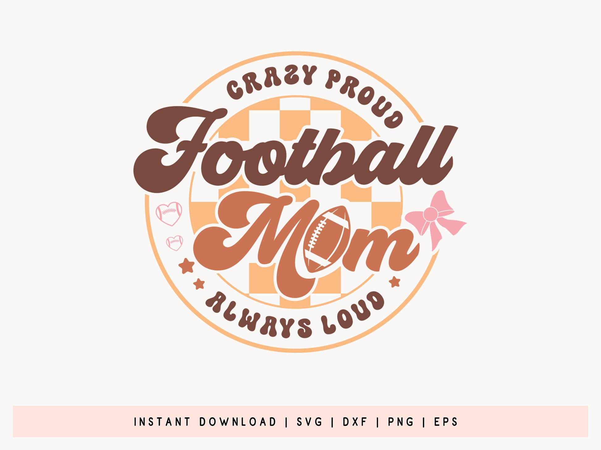 Celebrate your love for the game with the Retro Crazy Proud Always Loud Football Mom SVG! This exclusive design is perfect for every football mom who cheers the loudest and supports the proudest. Ideal for creating personalized T-shirts, hoodies, tote bags, hats, jerseys, or game day accessories. It adds a retro flair to your game-day crafts or projects. Easy to use with the Cricut and Silhouette machines, it’s a breeze for all your DIY crafting projects. Let your football mom pride shine with this standout "Crazy Proud Always Loud Football Mom" design. Shop now the Retro Football SVG and show your team spirit in style!