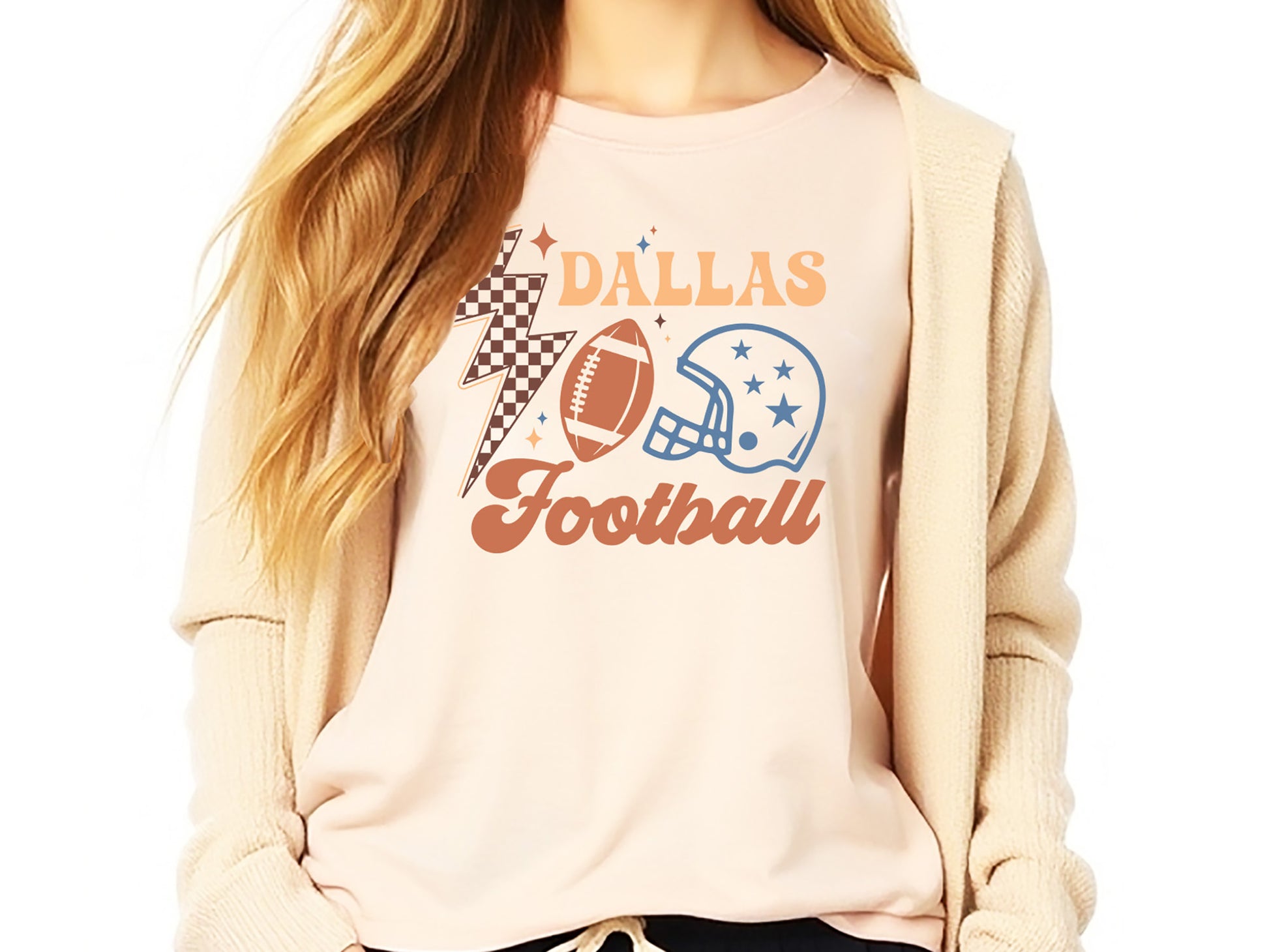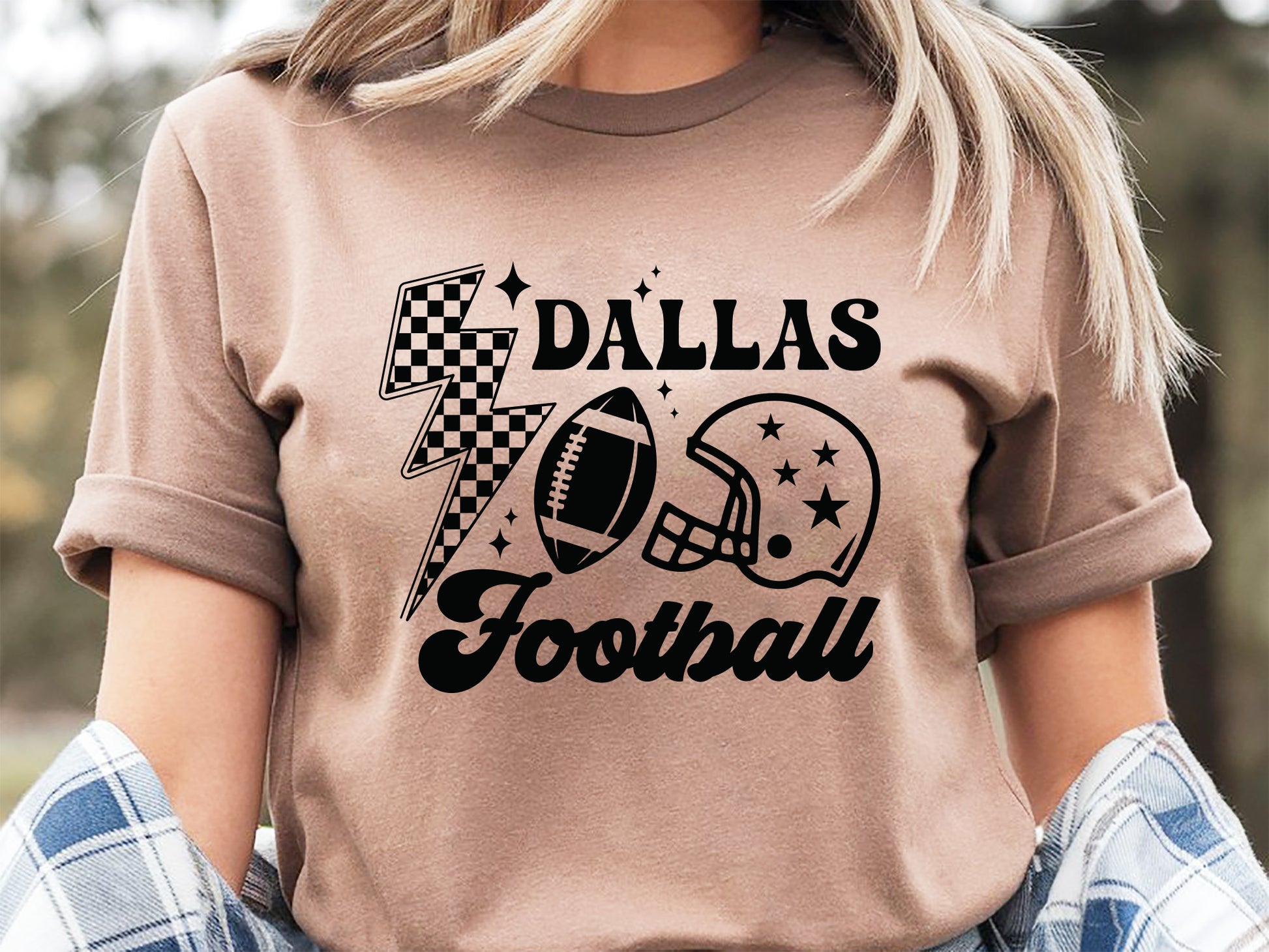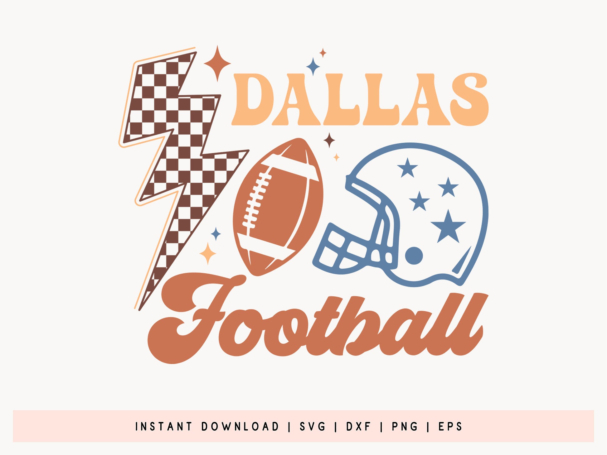 Show your team pride with the Retro Dallas Football SVG File. It includes iconic football elements like a lightning bolt, a football, and a classic football helmet, making it ideal for fans of the Dallas Cowboys and American football. Use it to create unique T-shirts, hoodies, caps, sweatshirts, or game-day decor. It can be used to cut with your Cricut, Silhouette, and other craft cutting machines. This Retro Football SVG file is ideal for crafting projects for tailgates, watch parties, or gifts for fellow fans. Whether you’re cheering from the stands or at home, the retro Dallas Football design is a must-have for loyal supporters. Make your projects pop with a touch of Dallas football pride! Get now.