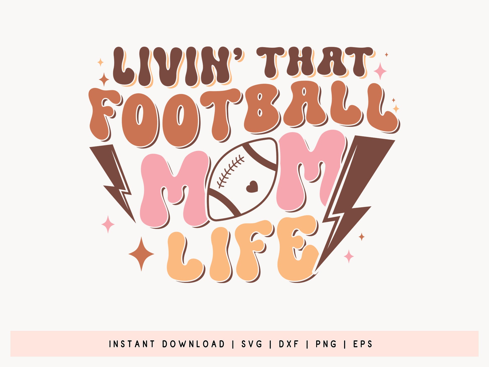 Show your football mom pride with the Retro Football SVG PNG - Livin’ That Football Mom Life design! This versatile design is perfect for crafting unique game-day apparel, accessories, or home decor. Whether you're creating shirts, mugs, or car decals, the Retro Football SVG PNG design has you covered. It is compatible with Cricut, Silhouette, and other cutting machines for effortless customization. Its retro typography and playful style make it a standout addition to your football season projects. Cheer your heart out in style with this fun and nostalgic "Livin That Football Mom Life" design. Ideal for every football-loving mom who lives for the thrill of the game! Buy now and get ready to craft, create, and shine on game day!