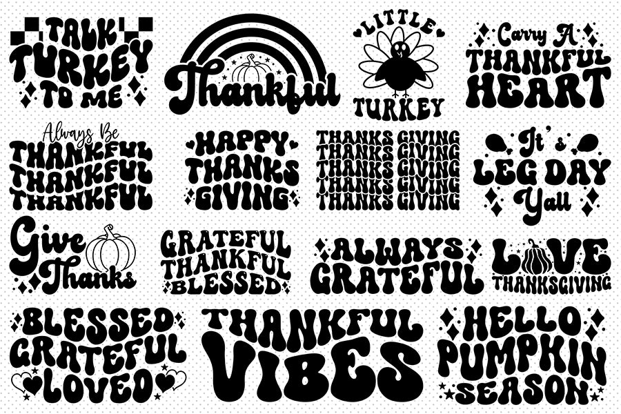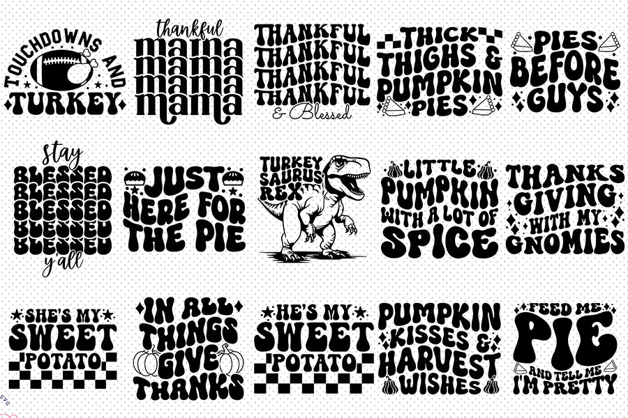 Get the adorable Retro Thanksgiving SVG Bundle, containing 30 unique and high-quality designs perfect for any thanksgiving project. These designs are ideal for creating t-shirts, mugs, tote bags, pillows, and much more!