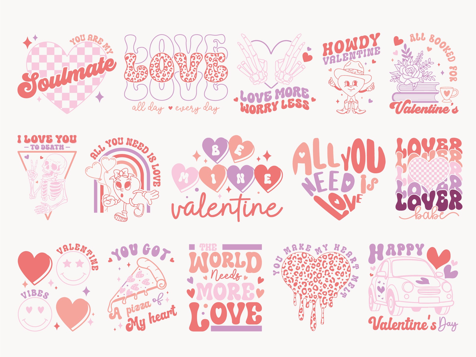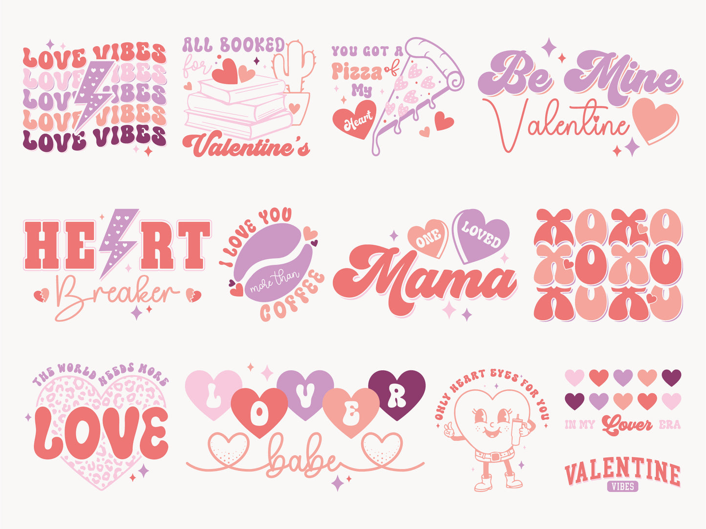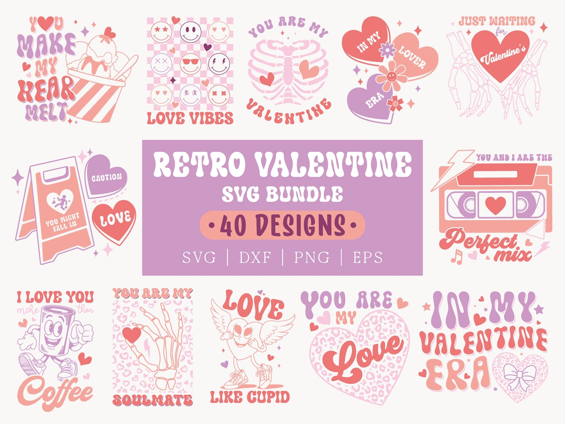 Check out vibrant Retro Valentine's Day SVG Bundle of unique, handmade, and high-quality graphics! Packed with 40 charming and versatile designs, perfect for crafting heartfelt gifts, decorations, apparel, and more. Each SVG features vibrant retro-inspired elements and playful Valentine’s Day quotes, offering endless creative possibilities for Cricut, Silhouette, Vinyl, and other cutting machines. Create standout t-shirts, mugs, tote bags, cards, and any other physical items. Whether you're crafting for your sweetheart, friends, or simply sprucing up your Valentine’s décor, this Retro Valentine's Day SVG Bundle has everything you need to make memorable creations. These designs are fully customizable and can be used on your personal projects or for commercial use.