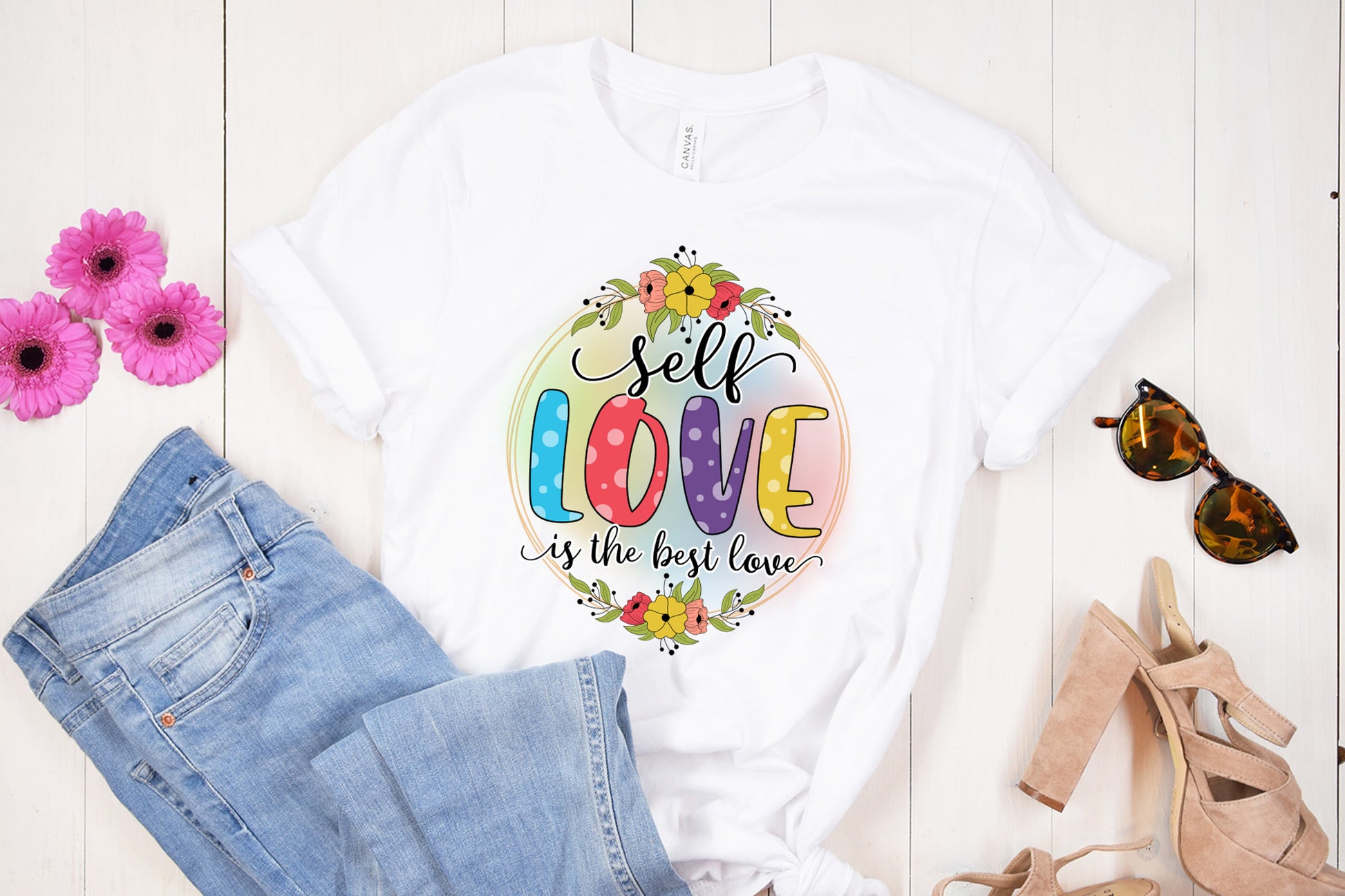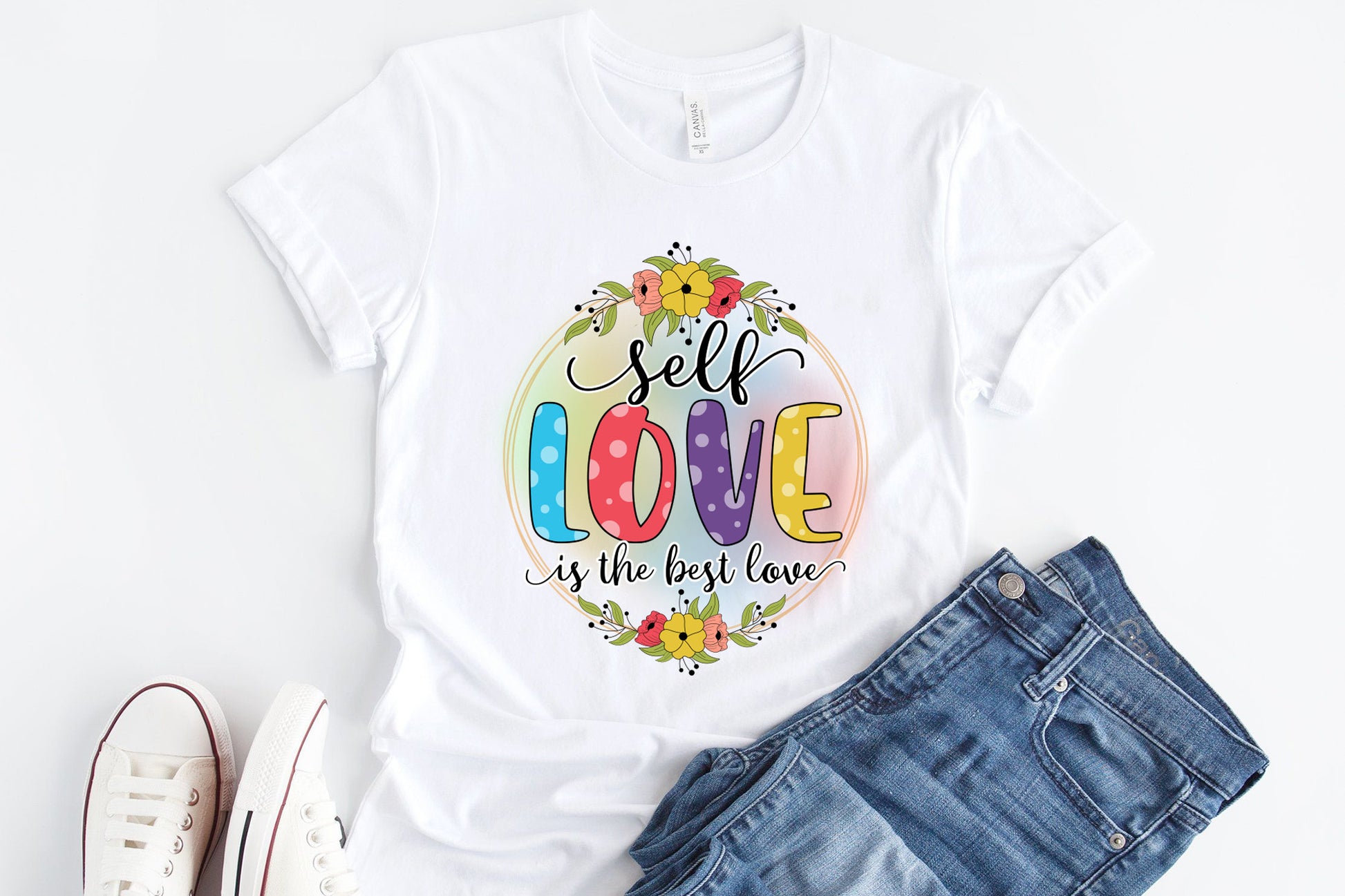 Looking for a unique and uplifting design to add to your collection? Check out our Self Love Quote Sublimation design! This design is perfect to make t-shirts, mugs, tote bags, much more!