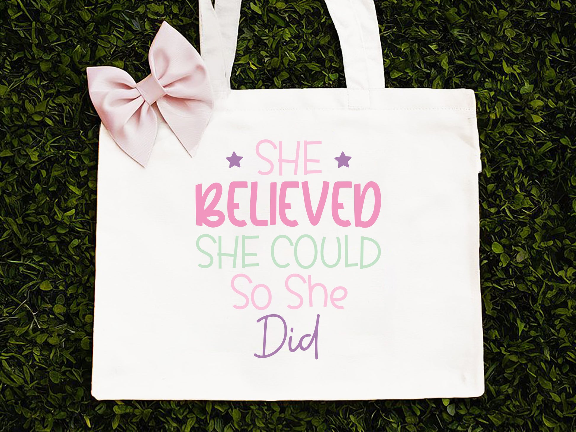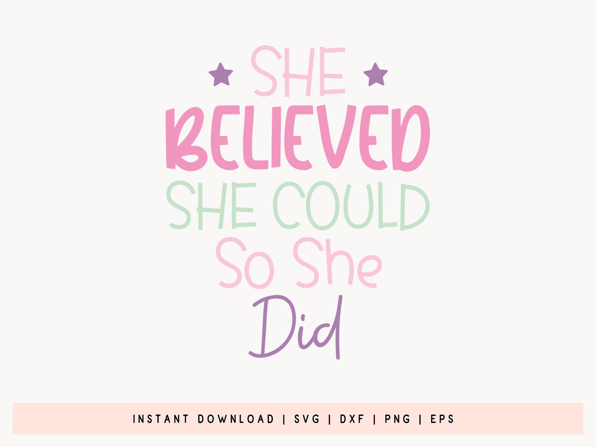 Check our our versatile She Believed She Did So She Did - Girl Power SVG! This inspiring design is available in SVG, DXF, PNG, and EPS formats, perfect for celebrating the strength and determination of every girl. Whether you're crafting motivating apparel, tote bags, uplifting wall art, or heartfelt girl power gifts, this girl SVG design is sure to make a statement. The bold and uplifting girl power SVG graphic is compatible with Cricut, Silhouette, and other cutting machines. You can create t-shirts, mugs, tote bags, sweatshirts, and other home decor items with this girl power SVG. Express your creativity and create stunning projects with the vibrant "She Believed She Did So She Did" design.