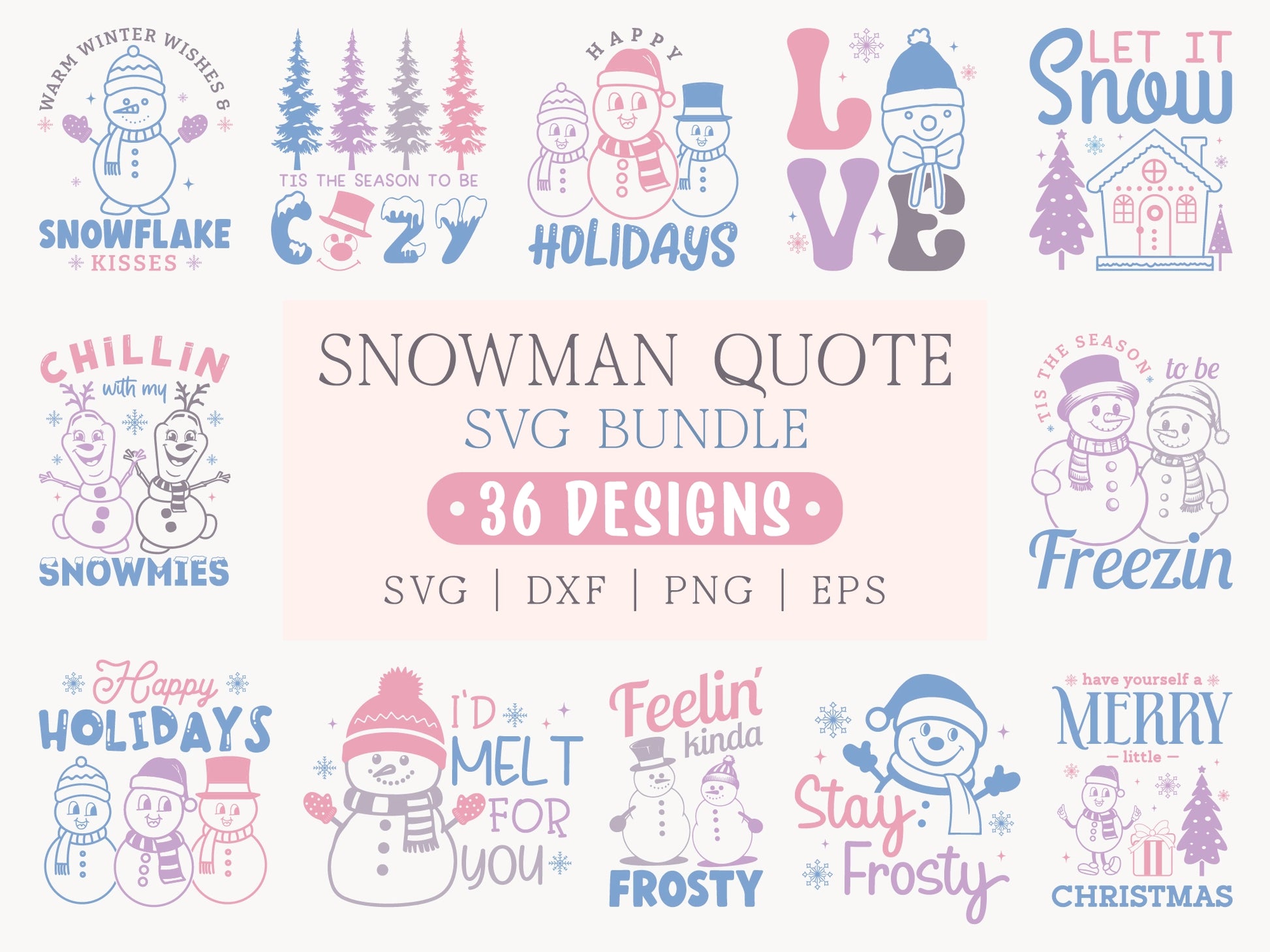 Buy our Snowman Quotes SVG Bundle, a versatile collection of 36 unique and festive snowman-themed sayings perfect for winter crafting or designing projects. This bundle includes a variety of cute and humorous quotes that are ideal for holiday projects like t-shirts, mugs, ornaments, signs, totes, hoodies, greeting cards, and other physical items. Each design is easy to use with any craft cutting machines like Cricut or Silhouette, allowing you to create elegant winter decor or heartfelt gifts. Whether you're looking to add a playful touch to your holiday crafts or spread frosty cheer, this Snowman Quotes SVG Bundle is perfect for all your seasonal DIY projects! Explore now.