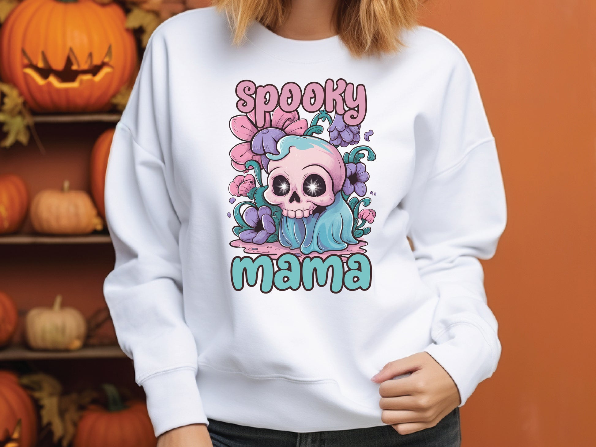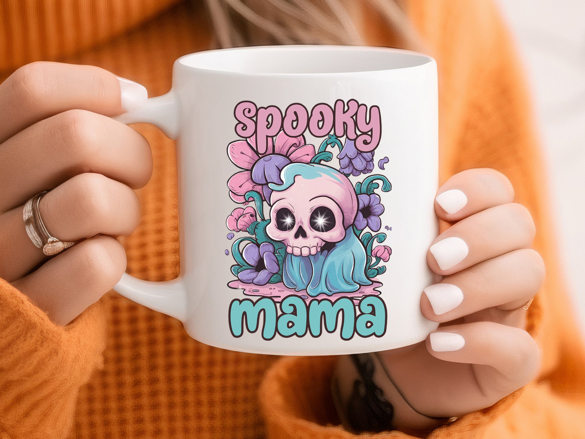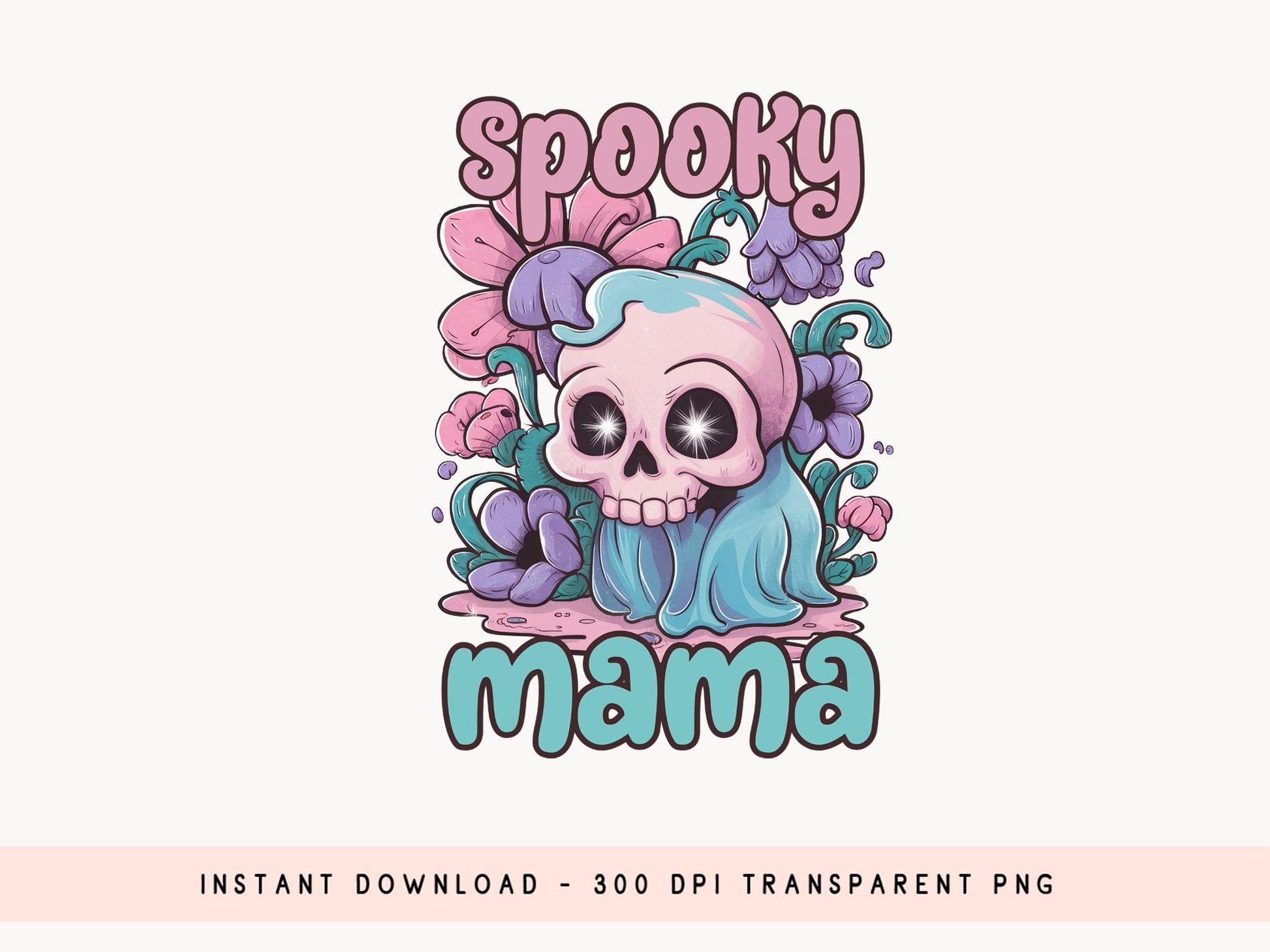 Download "Spooky Mama - PNG Pink Halloween Sublimation", the perfect way to add a spooky yet playful touch to your Halloween projects. It features a cute, cartoon-style skull with glowing eyes, surrounded by a whimsical arrangement of flowers and a flowing fabric. The pink and blue color palette adds a touch of sweetness to your Halloween themes. Whether you're creating party invitations, decorations, sweatshirts, mugs, totes, or greeting cards, this PNG Pink Halloween Sublimation design has you covered. Express your spooky style with this vibrant "Spooky Mama" design. Grab yours today and make amazing products!