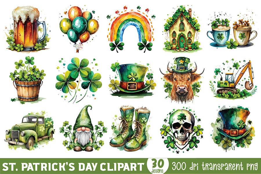 Explore the captivating St. Patrick’s Day Clipart Bundle! This exclusive collection features 30 high-quality, handpicked clipart designs for sublimation printing that add a touch of Irish charm and creativity to your St. Patrick’s Day crafts and projects.