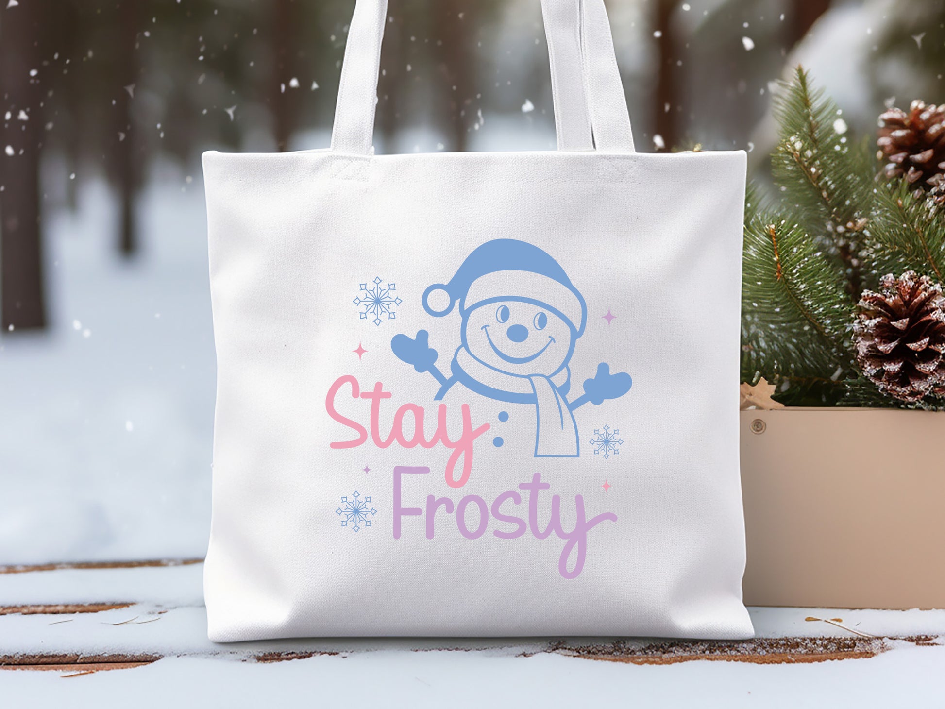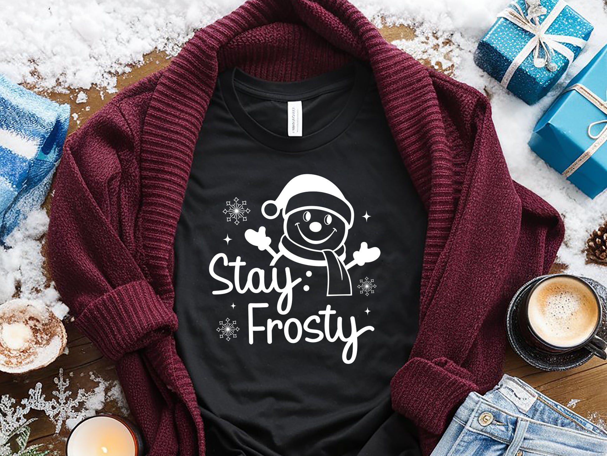 Check out our handcrafted "Stay Frosty - Snowman Quote SVG," a playful design that's perfect for adding a fun winter vibe to your holiday projects. With a cheerful snowman alongside the quirky "Stay Frosty" quote, this Snowman Quote SVG is great for creating festive apparel, holiday decor, mugs, or personalized gifts. It is customizable and is compatible with cutting machines like Cricut and Silhouette, a versatile file ideal for DIY enthusiasts looking to craft unique Christmas decorations or seasonal items. Bring a frosty, fun touch to your winter creations with this charming snowman design! Buy now and make cozy items.