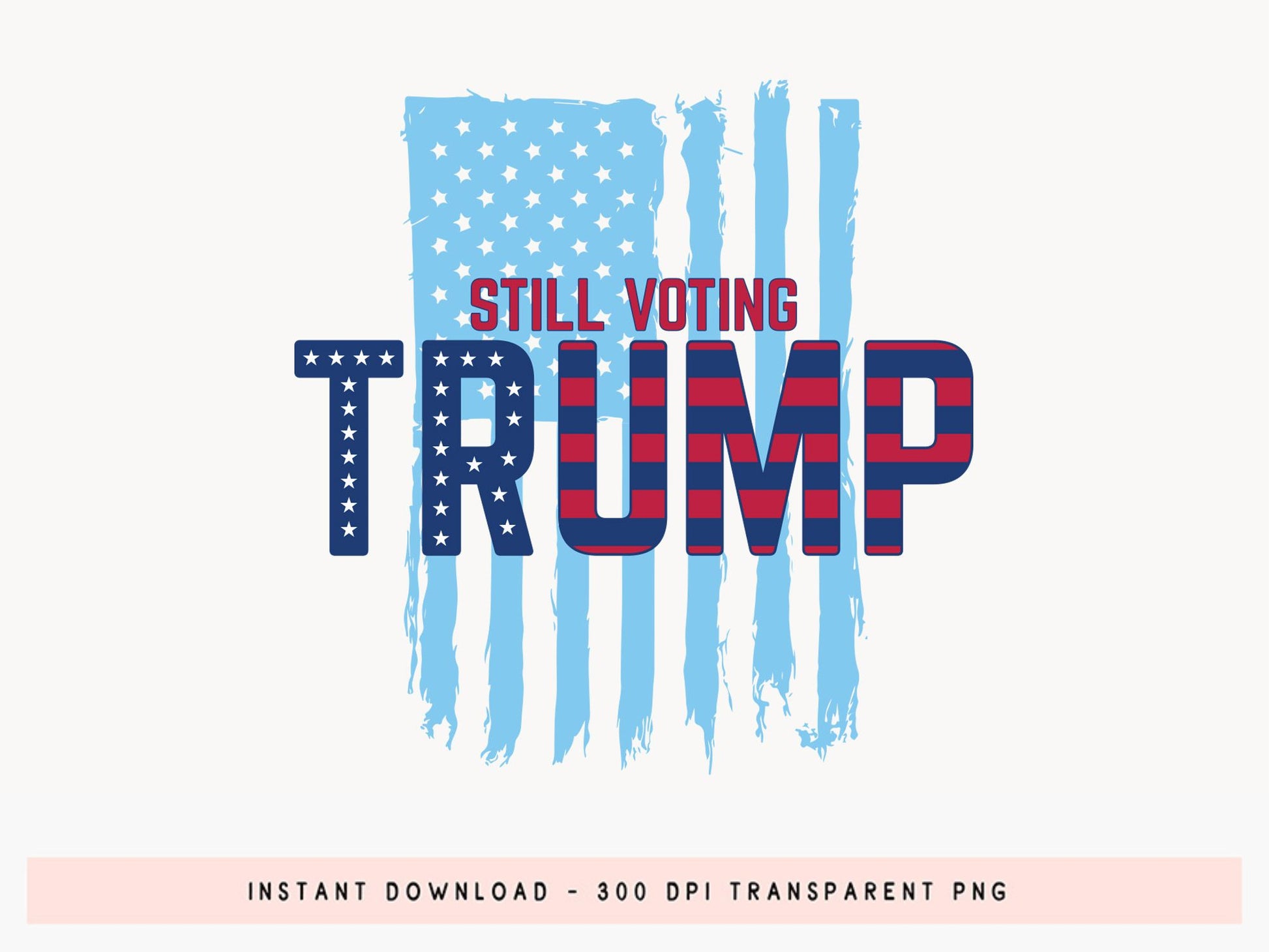 Buy the handcrafted Still Voting Trump Sublimation Design PNG, a strong and patriotic graphic for dedicated Trump supporters. Featuring bold lettering and a vibrant design, this PNG file is perfect for creating t-shirts, mugs, tote bags, and more. Whether you're gearing up for the next election or want to show your ongoing support, the Trump Sublimation Design PNG makes a powerful statement. This high-quality sublimation ensures crisp, long-lasting prints on a variety of surfaces. Let your voice be heard and your support be seen with the "Still Voting Trump" sublimation design, perfect for any project or campaign material. Take it now!