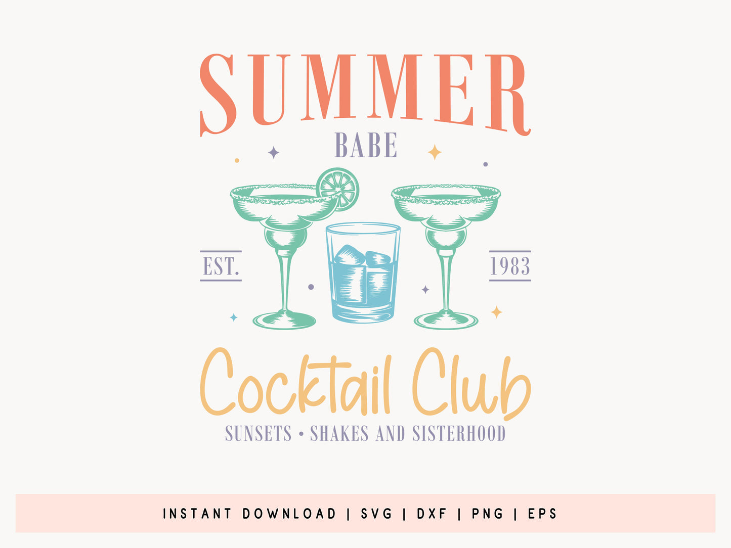 The Summer Babe Cocktail Club Cut File SVG is a unique and handmade design for your upcoming diy crafting projects! This cocktail summer SVG is suitable for creating adorable tees, party tumblers, beach bags, towels, and so much more. Whether you're heading to a pool party or mixing up some tropical vibes at home, the summer SVG design adds a playful and stylish flair to any project. It's fully customizable and comes in SVG, DXF, EPS, and PNG formats. This Summer SVG is compatible with all the major cutting machines like Cricut and Silhouette. If you're looking for a cute summer SVG to jazz up your DIY collection, this one is a must-have. From creating quirky apparel to designing eye-catching summer decor, the Summer Babe Cocktail Club design is an ideal option. Download it now!