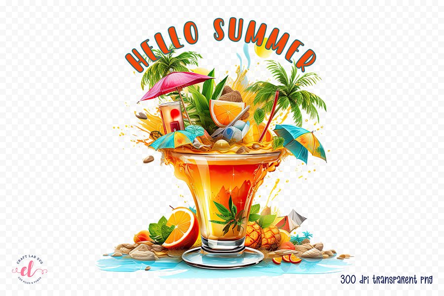 Add a touch of summer whimsy to your creations with our delightful sublimation design, showcasing umbrellas, palm trees, tropical fruits, and a playful, carefree vibe that embodies the joys of the season. Use it to create t-shirts, mugs, tote bags, and more!