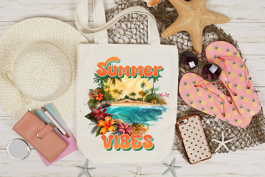 Capture the essence of summer with this vibrant sublimation design, featuring a burst of colorful flowers, ocean waves, and tropical motifs. With this design, you can create t-shirts, mugs, tote bags, and much more!