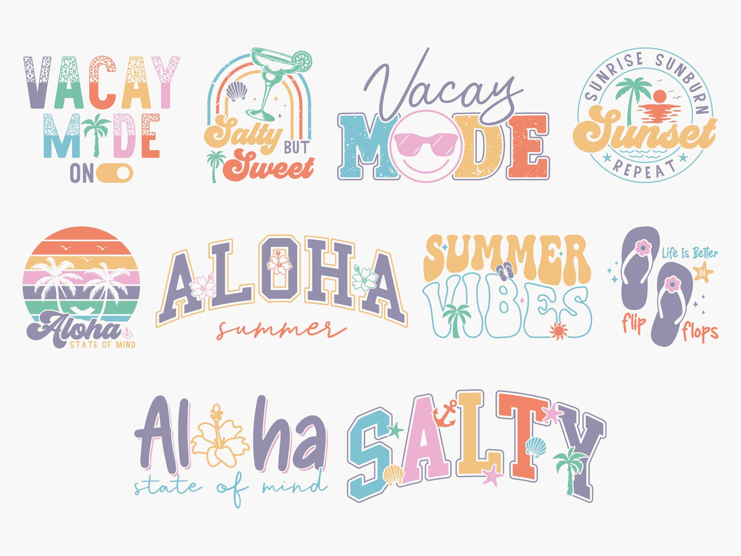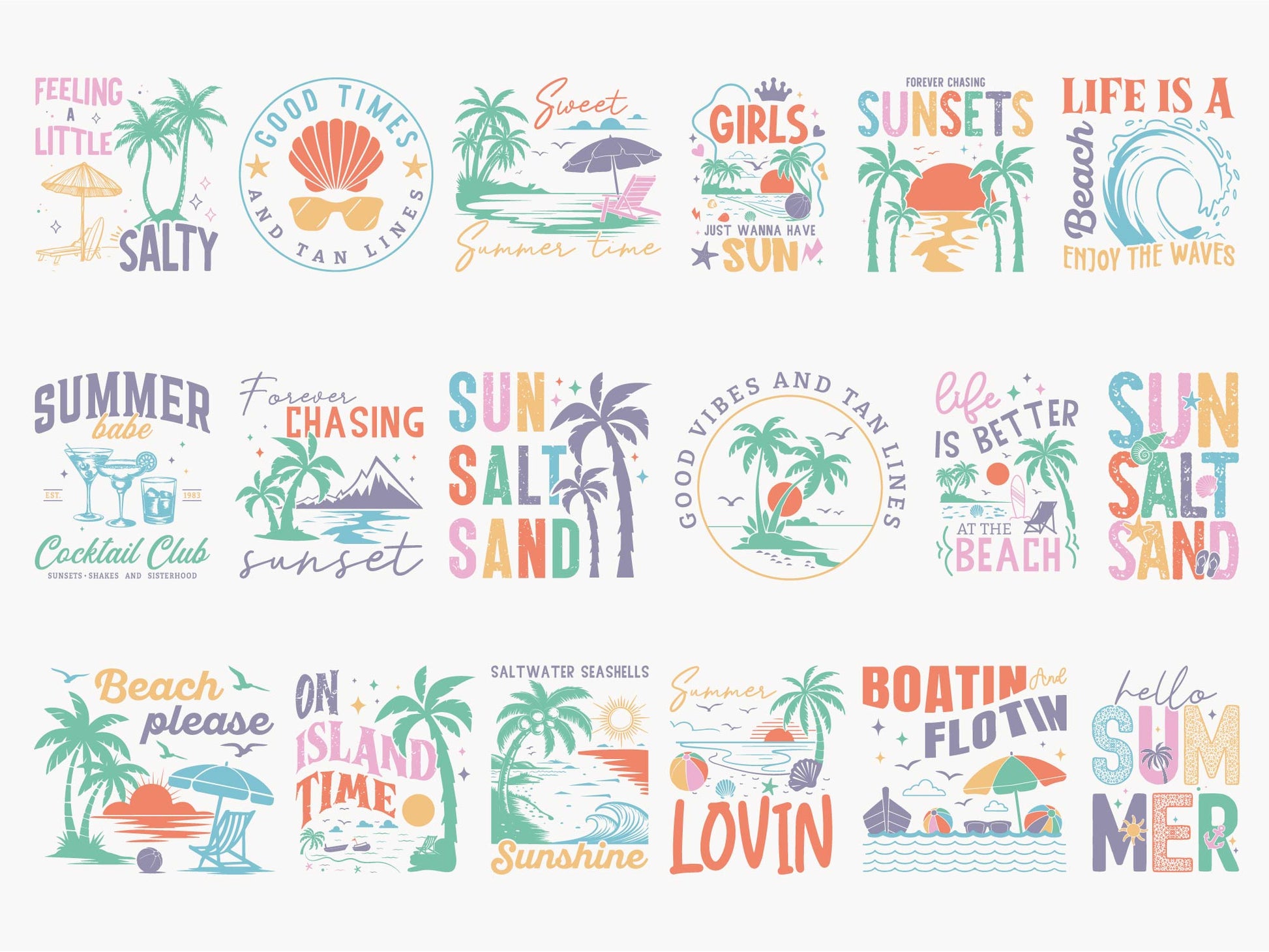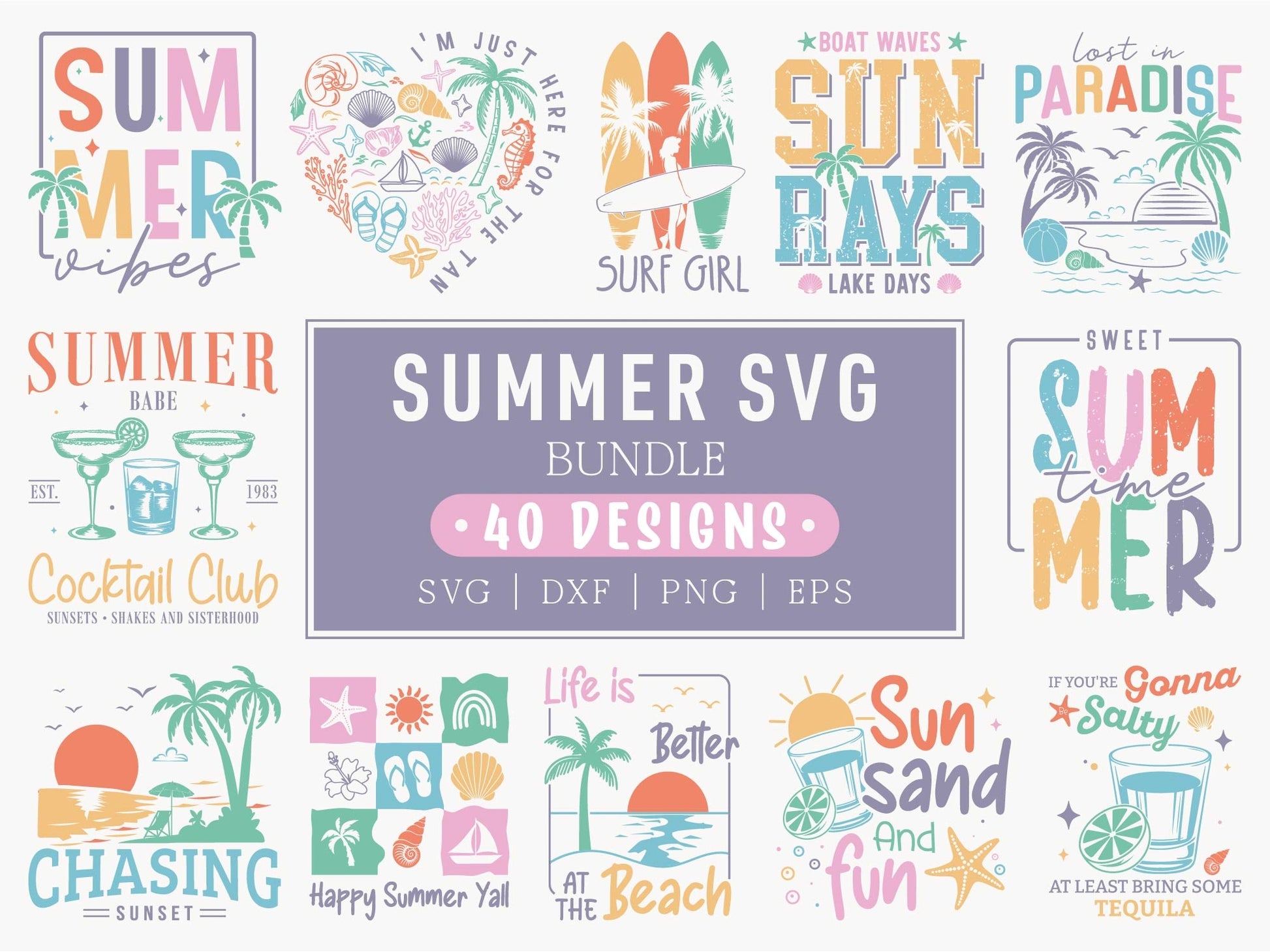 Check out our unique Summer SVG Design Bundle, perfect for crafters, small businesses, or anyone looking to upgrade their summer collection. This bundle is filled with 40 trendy and creative designs that are ideal for all your summer DIY projects! Whether you're creating cheerful summer shirts, beach bags, mugs, towels, or decor, these unique designs will add that seasonal charm. Each design includes SVG, DXF, EPS, and PNG files in three versions - color, black, and white. These are fully customizable and can be used to cut with Cricut, Silhouette, and other machines/software. With everything from tropical elements and sunny quotes to beach days and fruity fun, each design is crafted to inspire joy and creativity in your summer crafts. Download now!