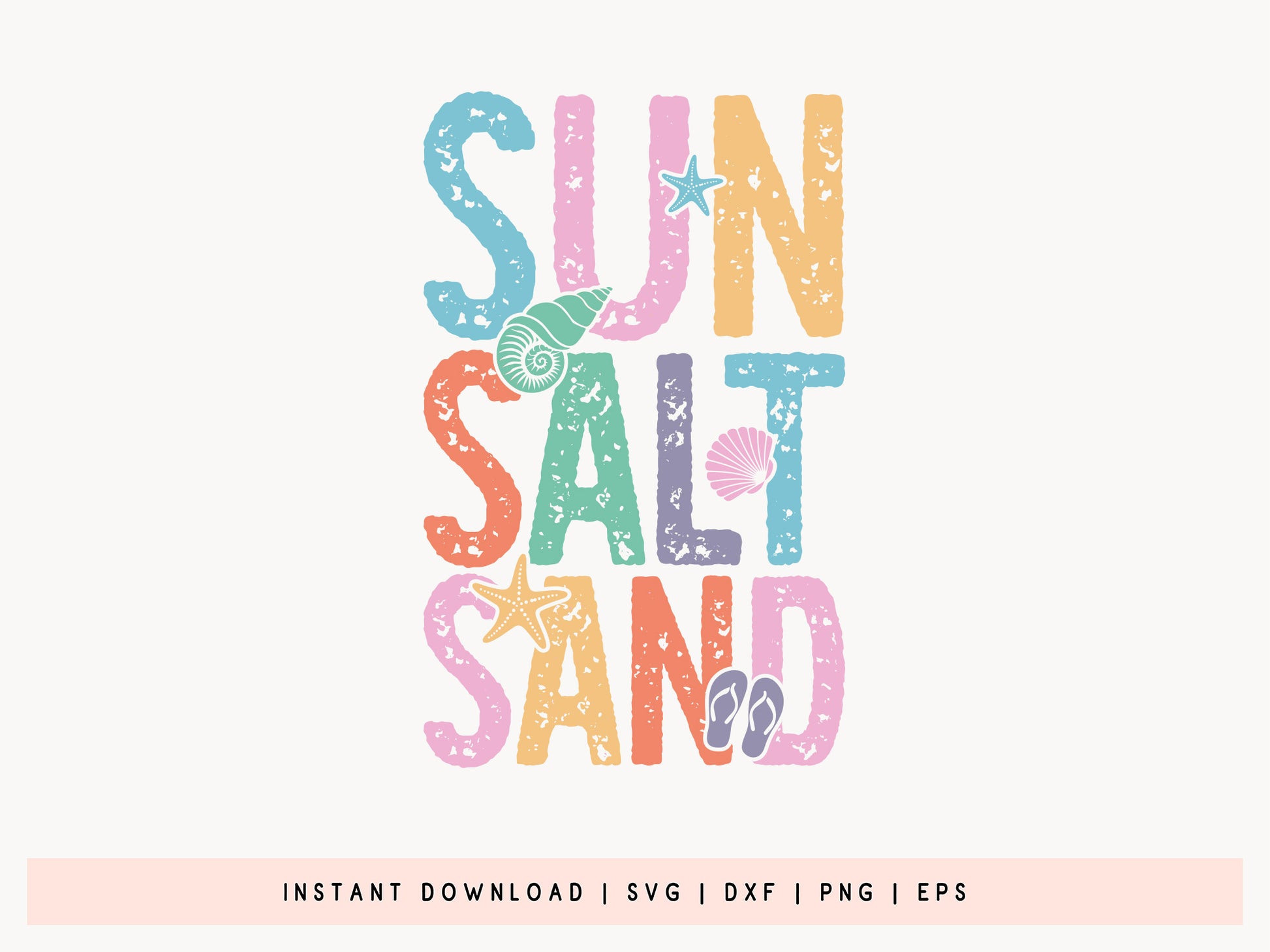 Discover our Sun Salt Sand, Summer Holiday SVG design! This charming summer SVG is a must-have for anyone who loves the beach and enjoys crafting. It's ideal for making tank tops, tote bags, mugs, t-shirts, towels, and more. Whether you're planning a trip to the coast or simply dreaming about it, the summer holiday SVG design will bring a cheerful touch to your DIY projects. It's fully customizable and super user-friendly, available in SVG, DXF, EPS, and PNG formats, making it compatible with Cricut, Silhouette, and other cutting machines. If you're looking for a funny and stylish summer SVG, this one is perfect for you. Bring a splash of summer into your crafts and let your creativity flow with this breezy "Sun Salt Sand" design!