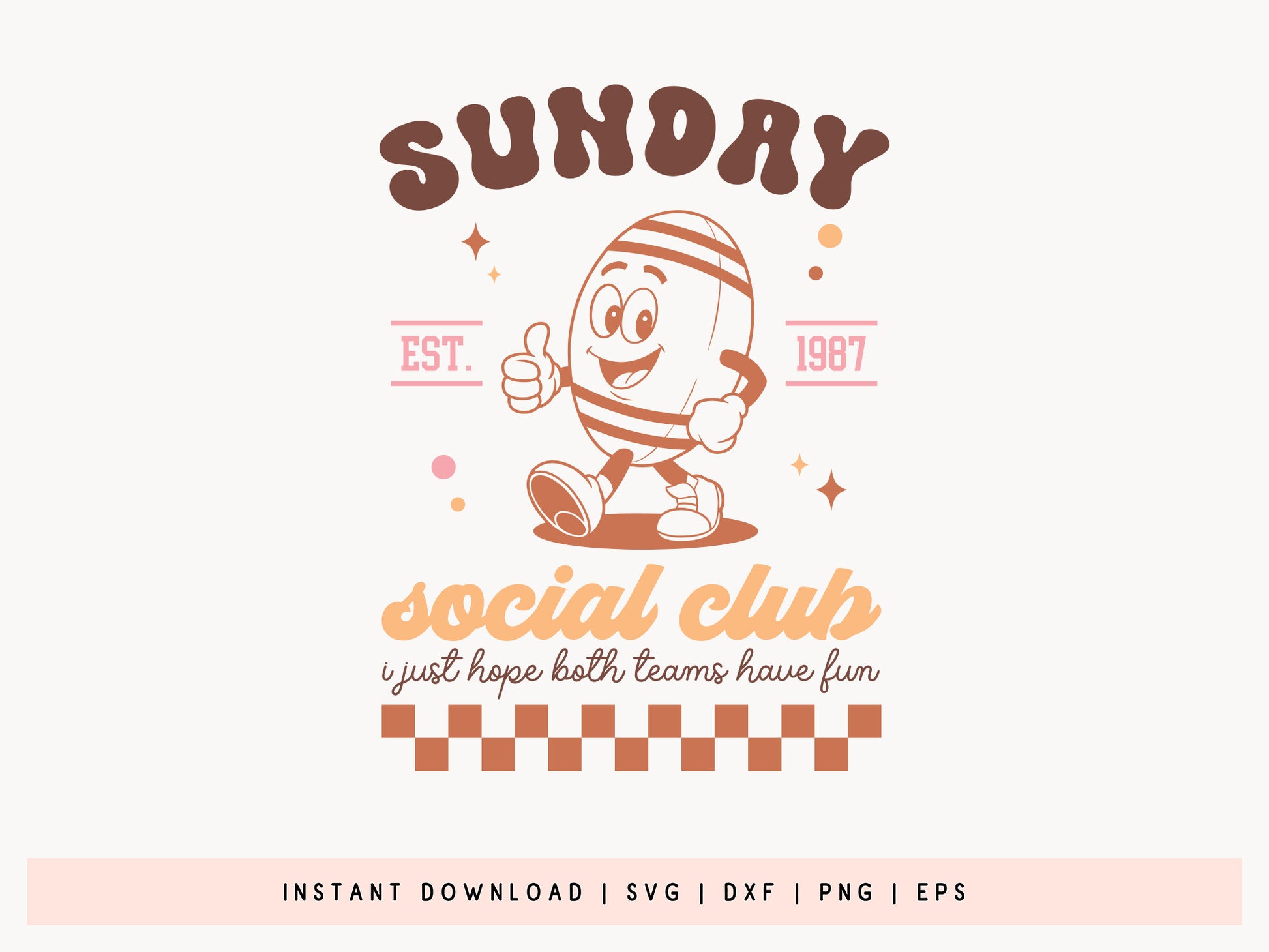 Get game-day ready with the Sunday Social Club - Retro Football SVG File! This retro-inspired design adds a playful vibe to your football-themed crafts. Whether you're designing t-shirts, hoodies, tote bags, or party decor, the Retro Football SVG File is a must-have for fans who make Sundays all about football and fun. Perfect for Cricut and Silhouette users, it's easy to use and ideal for creating standout projects for tailgates, watch parties, or casual outings. Show off your love for football and the camaraderie of the Sunday Social Club with this unique Sunday Social Club design. A touchdown for any DIY enthusiast or football lover! Download now.