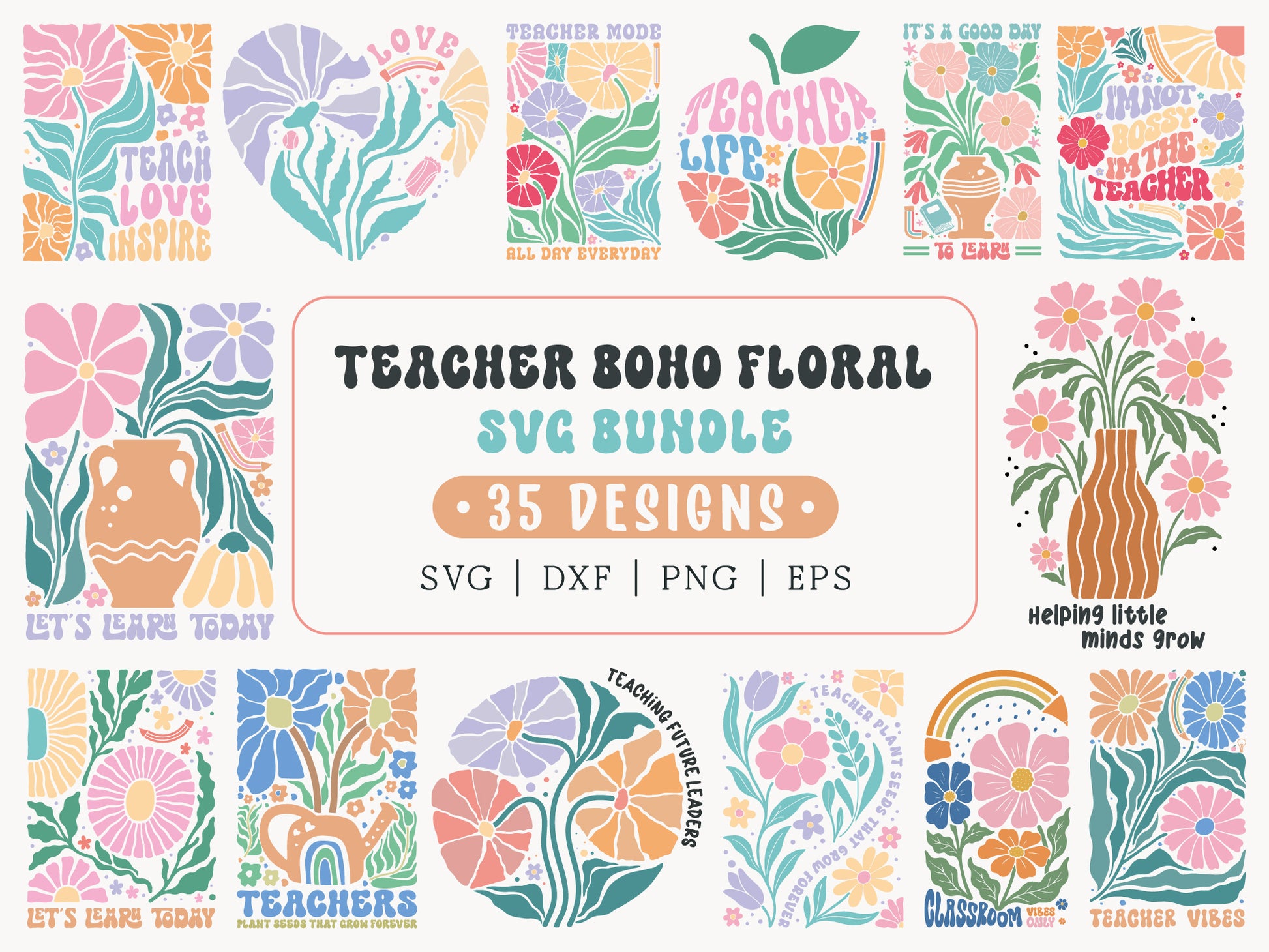 Check out our Teacher Boho Flower SVG Bundle! This amazing collection features 35 high-quality SVG, DXF, EPS, and PNG files that you can customize to your heart's content. Whether you're creating t-shirts, tote bags, classroom signs, or unique gifts, the Teacher Boho Flower SVG Bundle brings a trendy floral vibe that truly honors our educators. Made with care and a sprinkle of boho charm, it works seamlessly with Cricut, Silhouette, and other cutting machines. It's the perfect choice for DIY enthusiasts looking to craft thoughtful gifts, classroom decorations, or end-of-year thank-you items. With a variety of floral designs and heartfelt quotes included, this Teacher Boho Flower SVG Bundle makes it super easy to infuse personality and style into any project!