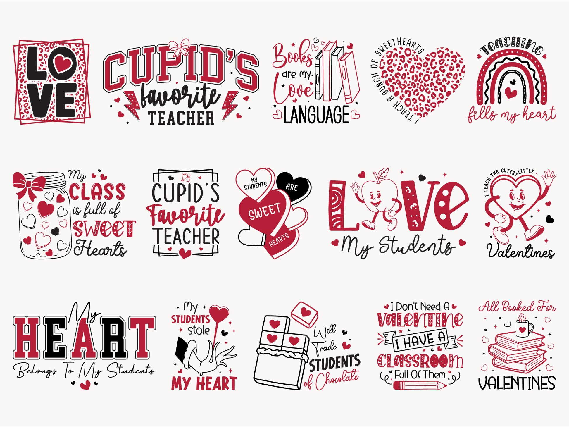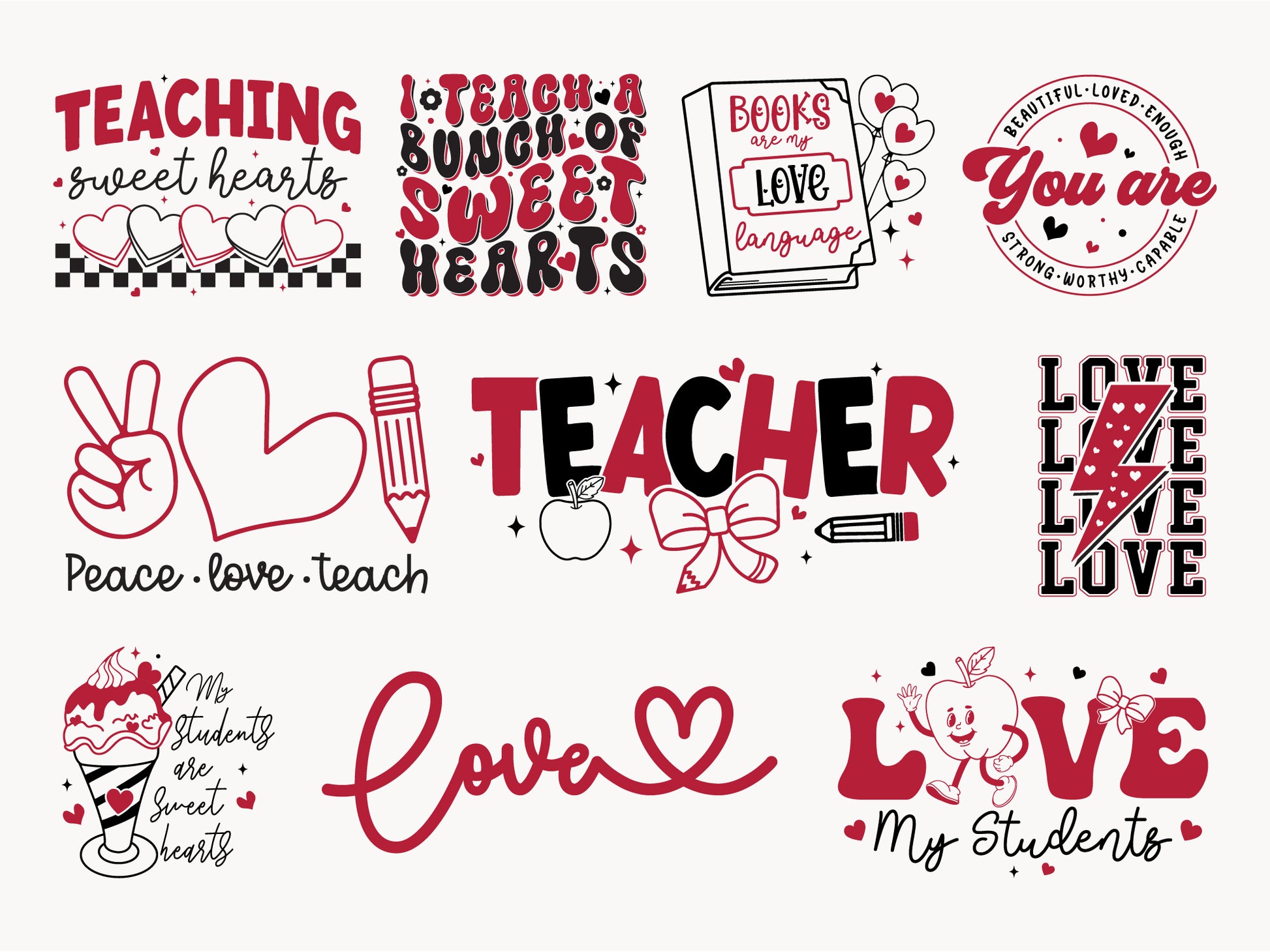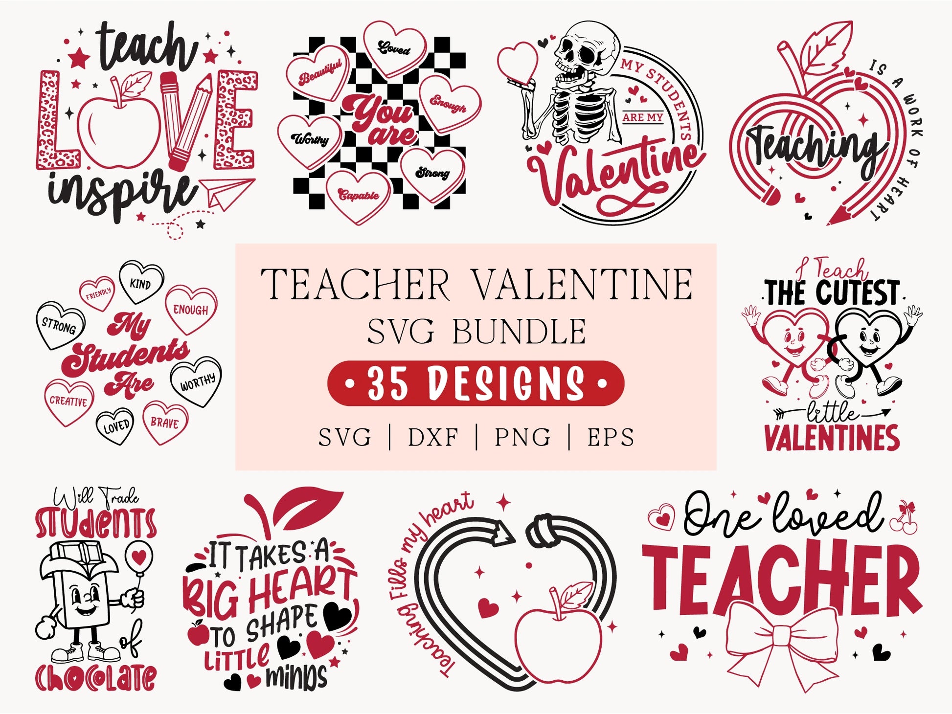 Purchase our Teacher Valentine's Day SVG PNG Bundle, an ultimate collection for spreading love and appreciation to your favorite educators! This unique bundle is packed with 35 adorable and heartwarming designs perfect for creating Valentine’s gifts, classroom decorations, and personalized crafts for your students or fellow teachers. From inspiring quotes to playful themes, each design is versatile and easy to use with Cricut, Silhouette, Vinyl, and other cutting machines. Whether you’re making t-shirts, mugs, cards, hoodies, and other physical items, this bundle has everything you need to add a creative touch to your to your upcoming Valentine's Day crafts or designing projects. You can use these designs on your physical products as personal or for commercial use.