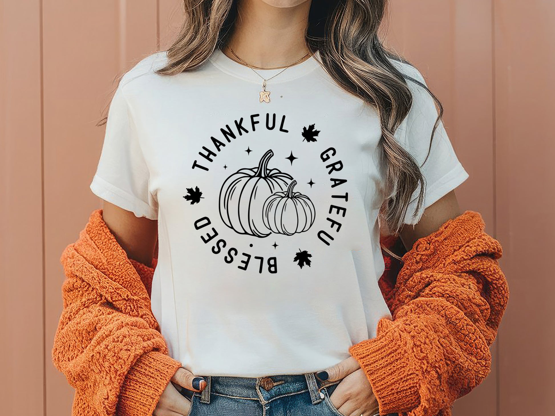 Check out this "Thankful Grateful Blessed - Thanksgiving SVG File", an elegant design for creating festive crafts like t-shirts, tote bags, mugs, signs, or table decor. Featuring graceful typography with a touch of seasonal charm, it’s a versatile design that fits any Thanksgiving project. Crafting for your home or creating heartwarming gifts for loved ones, this Thanksgiving SVG File is a unique addition. It is compatible with all major cutting machines and easy to use for both beginners and experienced crafters. Share your appreciation and festive spirit with this timeless "Thankful Grateful Blessed" design that adds beauty and meaning to all your Thanksgiving creations! Buy now.