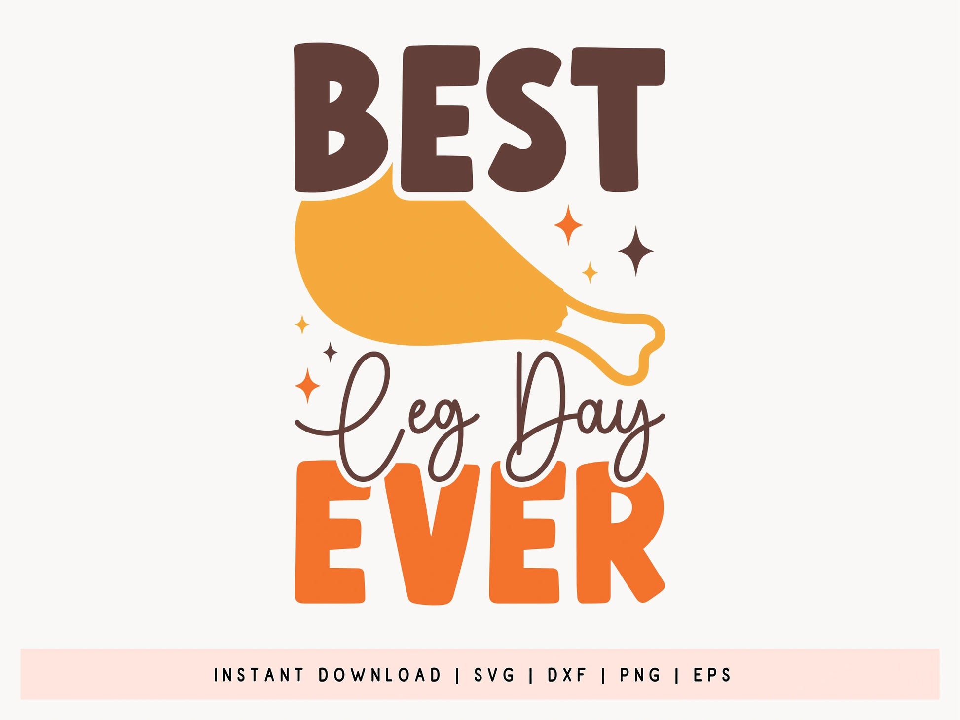 View our "Thanksgiving SVG Cut File - Best Leg Day Ever", a humorous design suitable for celebrating the upcoming holiday, featuring fun typography and a festive turkey leg theme. Ideal for crafting t-shirts, mugs, totes, wood signs, and much more. It can be used with vinyl, Cricut, and other cutters. Easy to use for personalizing gifts or making unique decor that stands out. Whether you’re hosting Thanksgiving dinner or looking for a quirky design for the season, this Thanksgiving SVG Cut File is a fantastic choice. Celebrate turkey day with style and humor using the "Best Leg Day Ever" design! Get now and add a playful twist to your Thanksgiving projects.
