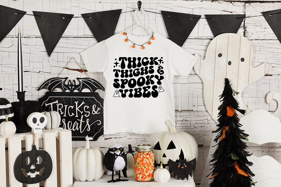 Thick Thighs & Spooky Vibes - Retro Halloween SVG