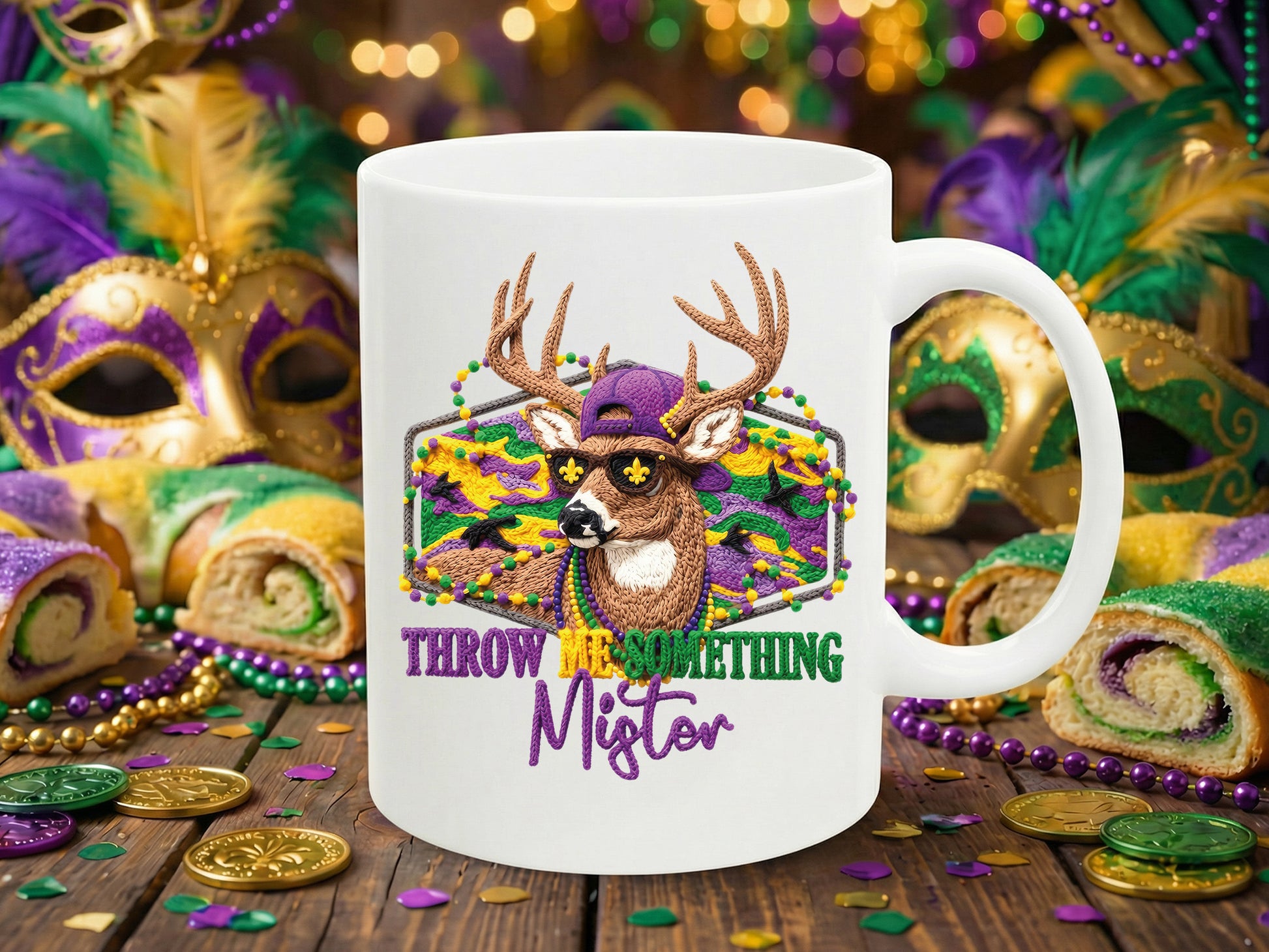I designed Throw Me Something Mister, Faux Yarn Mardi Gras PNG to giving it a cozy yarn twist. The fun fonts and vibrant colors really make every project shine.