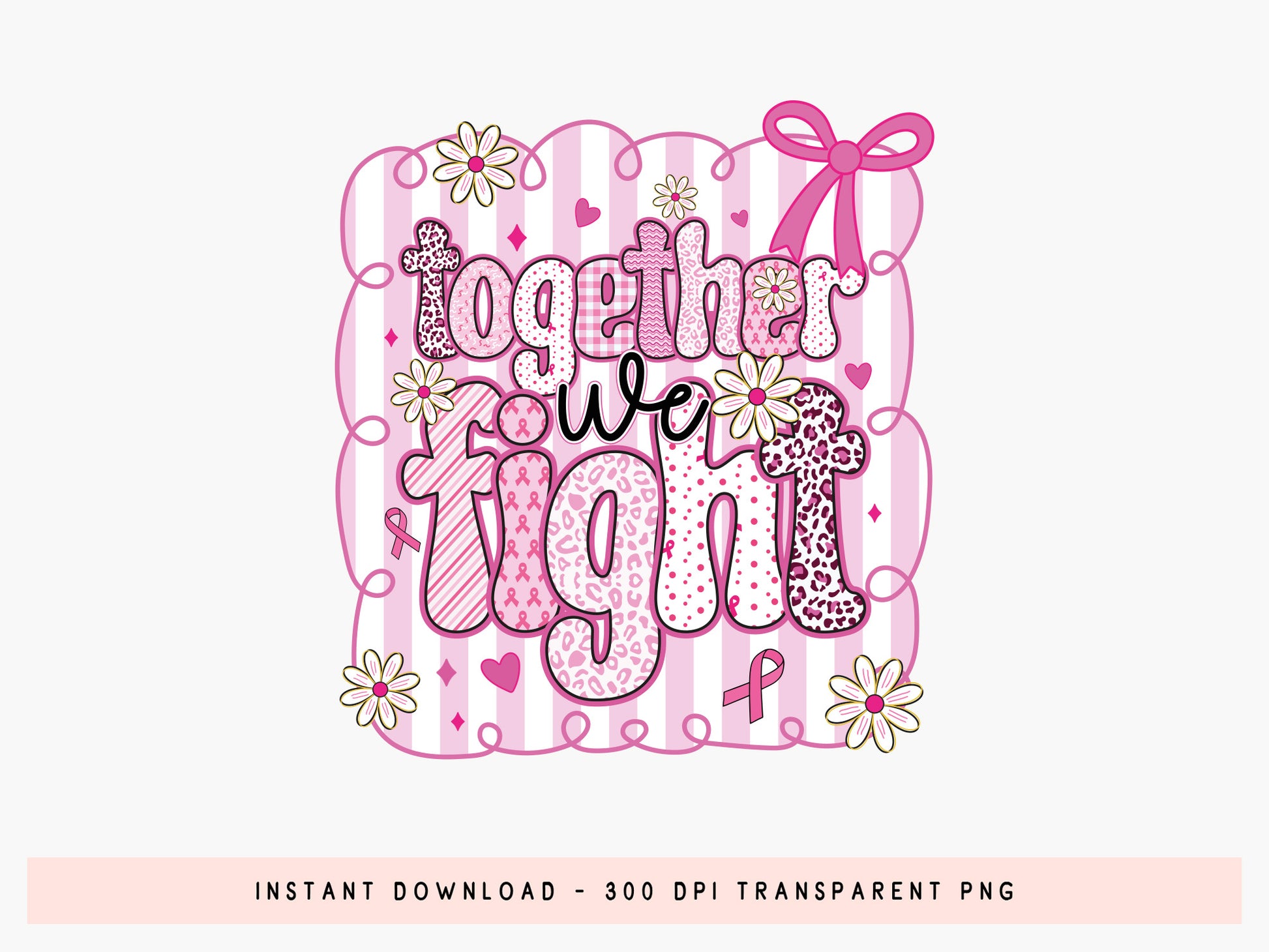 Check out our Together We Fight - Preppy Breast Cancer Sublimation design. It is perfect for honoring warriors and raising awareness. It’s a high-quality file that adds a stylish preppy flair to your projects is perfect for t-shirts, mugs, tote bags, or more.
