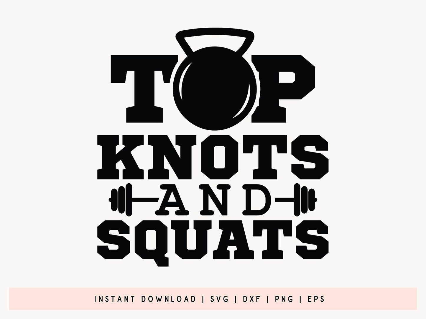 Browse the Top Knots and Squats - Workout Cut File SVG. This handmade design is just what fitness enthusiasts need to flaunt their strength and style, whether they're at the gym or on the move. Perfect for crafting custom workout shirts, gym bags, water bottles, or even wall art, the Workout Cut File SVG adds a fantastic blend of attitude and power to all your fitness projects. It's fully customizable and available in SVG, DXF, PNG, PDF and EPS formats. You can use it seamlessly with Cricut, Silhouette, and other cutting machines. If you're making something for yourself or creating fitness-themed gifts, this Workout Cut File SVG will make a statement.