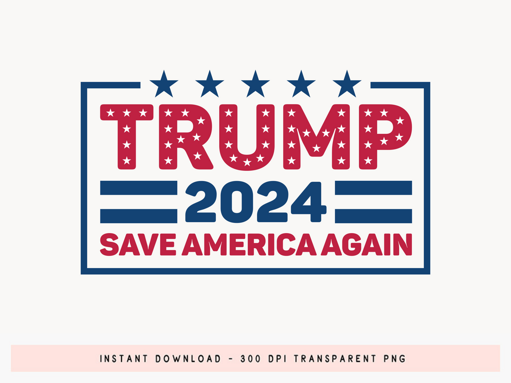 Get the Trump 2024 Save America Again Sublimation, a vibrant, unique design for any supporter of the 2024 Trump campaign. Featuring eye-catching colors and a patriotic theme, this Trump Sublimation is perfect for creating t-shirts, mugs, totes, and other merchandise. Whether you're rallying with fellow supporters or simply showing your pride at home, the "Trump 2024 Save America Again" design captures the spirit of the campaign. Its high-quality resolution makes it ideal for crafting standout products that celebrate your political beliefs. Make your support clear and stylish with this impactful "Save America Again" sublimation design! Explore now.