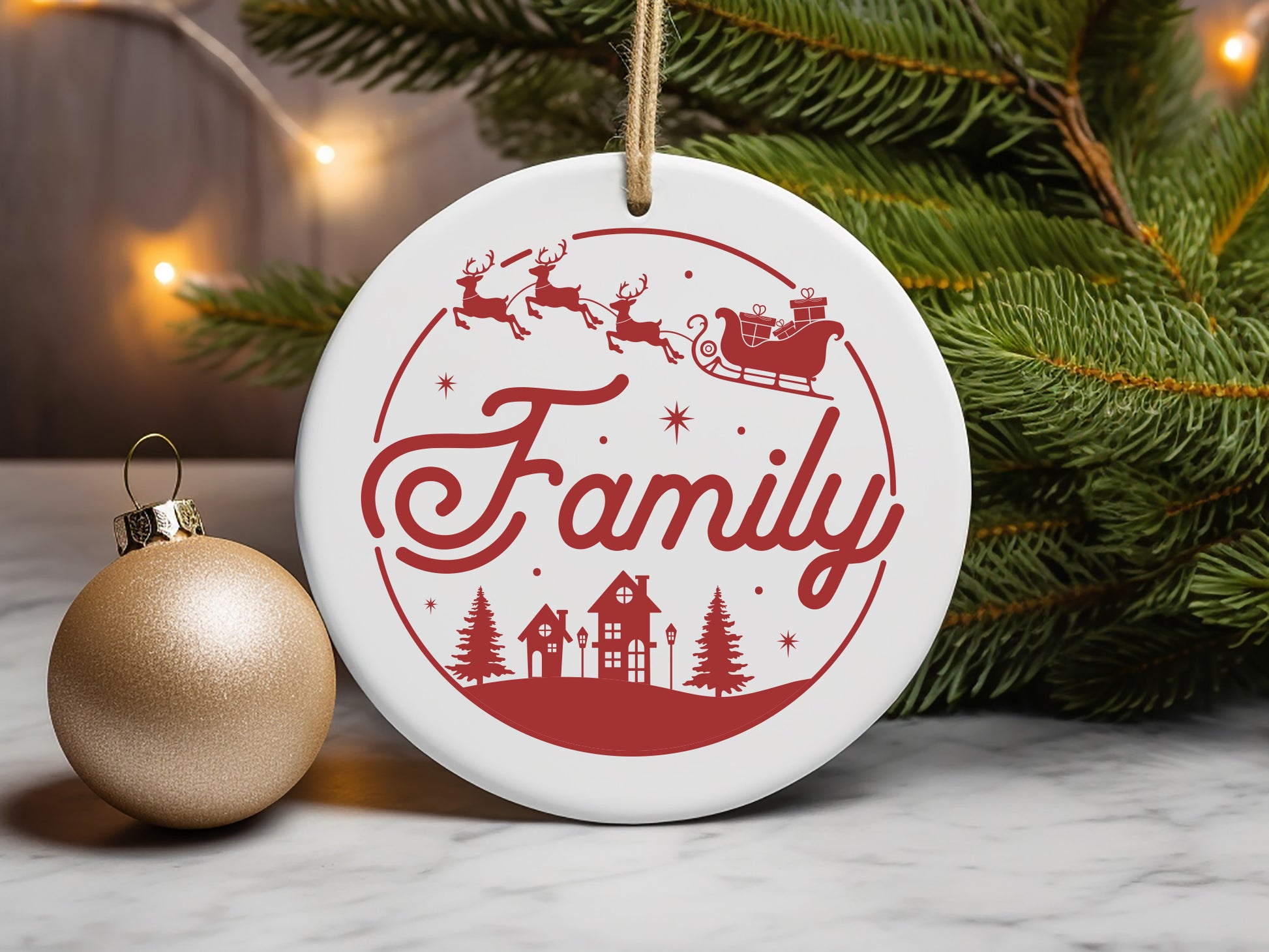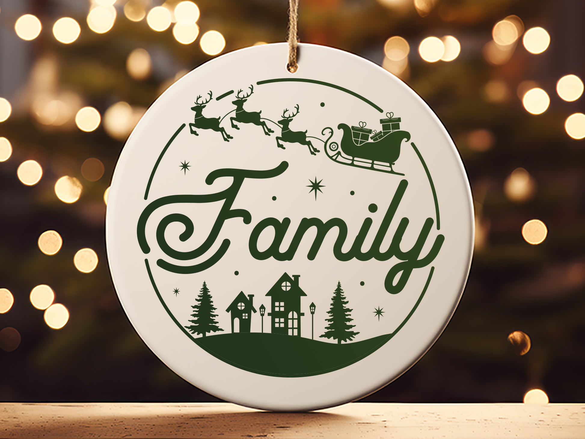 Introducing the "Unique Christmas Ornament SVG - Family" - a beautiful design featuring a charming scene of Santa Claus delivering gifts from his sleigh, flying over a snowy village with houses and trees. Perfect for adding a customized flair to your Christmas tree, this Unique Christmas Ornament SVG file is compatible with Cricut, Vinyl, and other cutting machines, allowing for seamless crafting. Whether you’re making ornaments for your own family or creating heartfelt gifts for friends, this unique design serves as a lovely reminder of the love and bonds that connect us all during the holiday season. Shop now and celebrate your family traditions and create lasting memories!