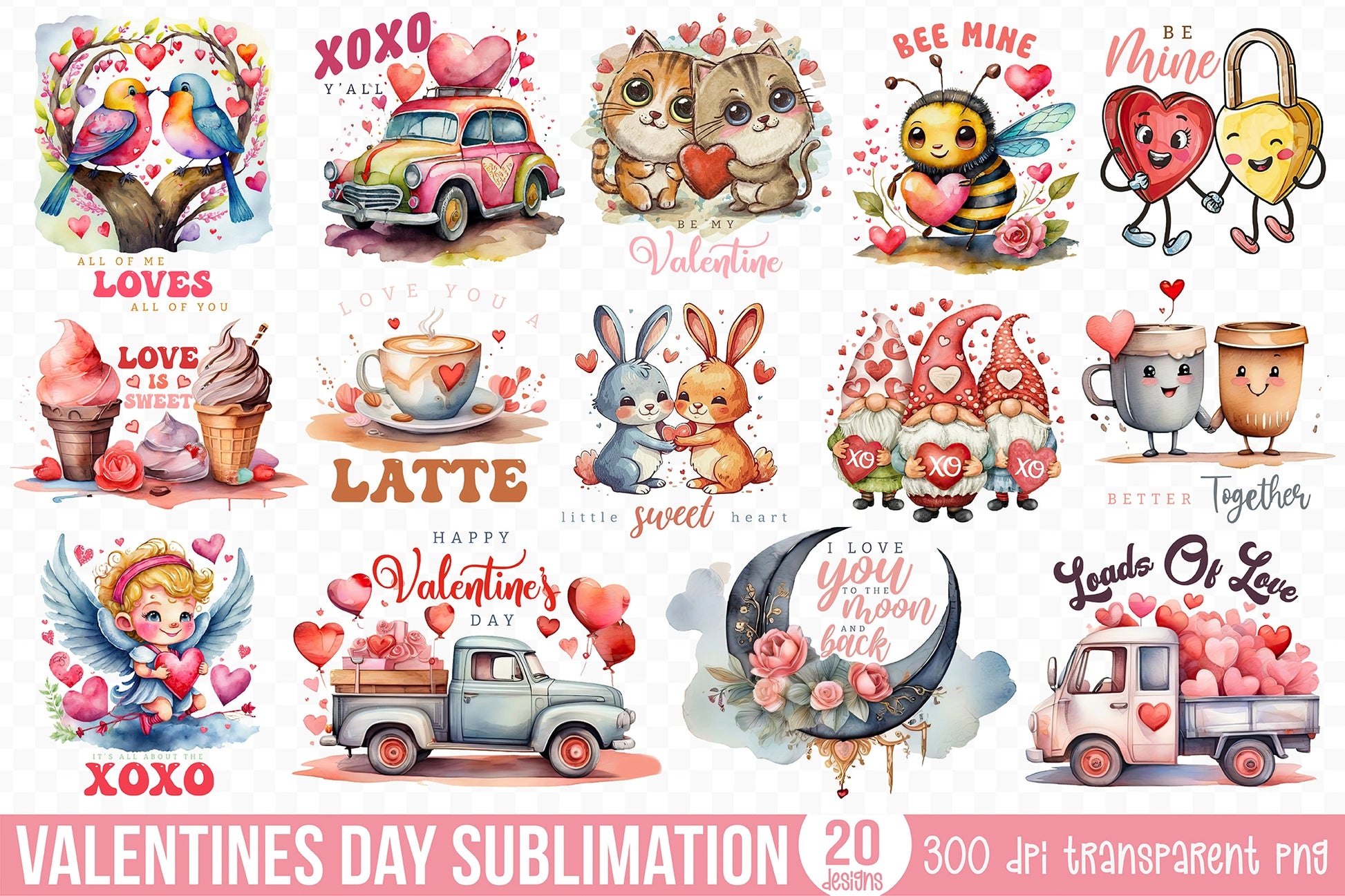 Purchase our vibrant Valentines Day Sublimation PNG Bundle! This exclusive collection is packed with 20 unique, high-quality designs perfect for all your Valentine's Day projects. From heartfelt quotes to whimsical graphics, each PNG file is meticulously crafted to add a touch of romance and fun to your creations. Whether you're designing mugs, t-shirts, greeting cards, totes, or home décor, this bundle has you covered. The PNG files are easy to use, compatible with sublimation printers, and provide vibrant results on various materials. Perfect for crafters, small business owners, or anyone looking to make unique Valentine's Day gifts! Get ready for spreading love in a creative way using this versatile Valentines Day Sublimation PNG Bundle.
