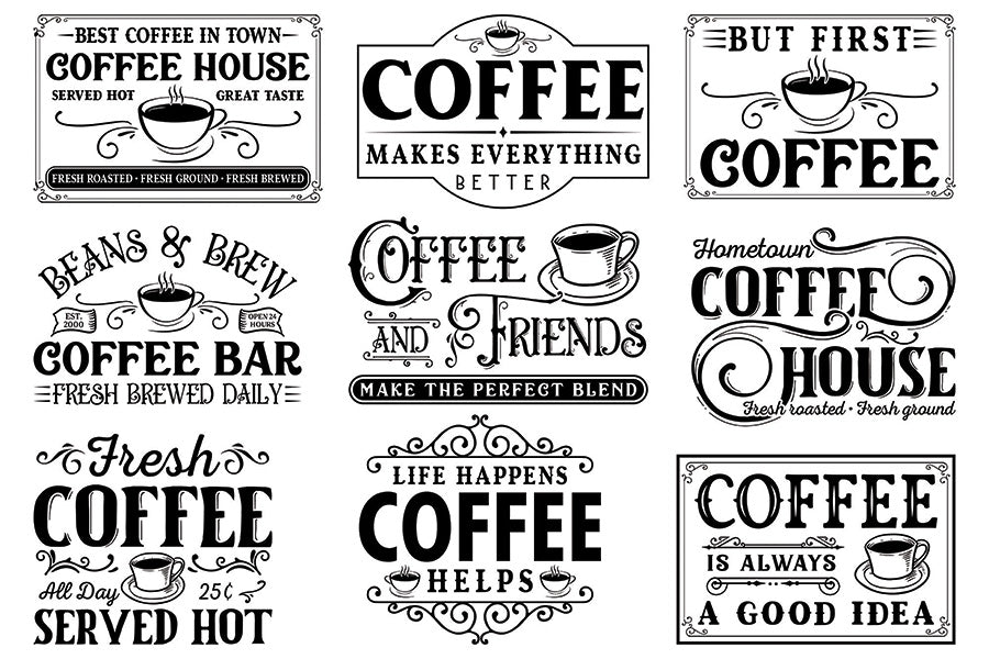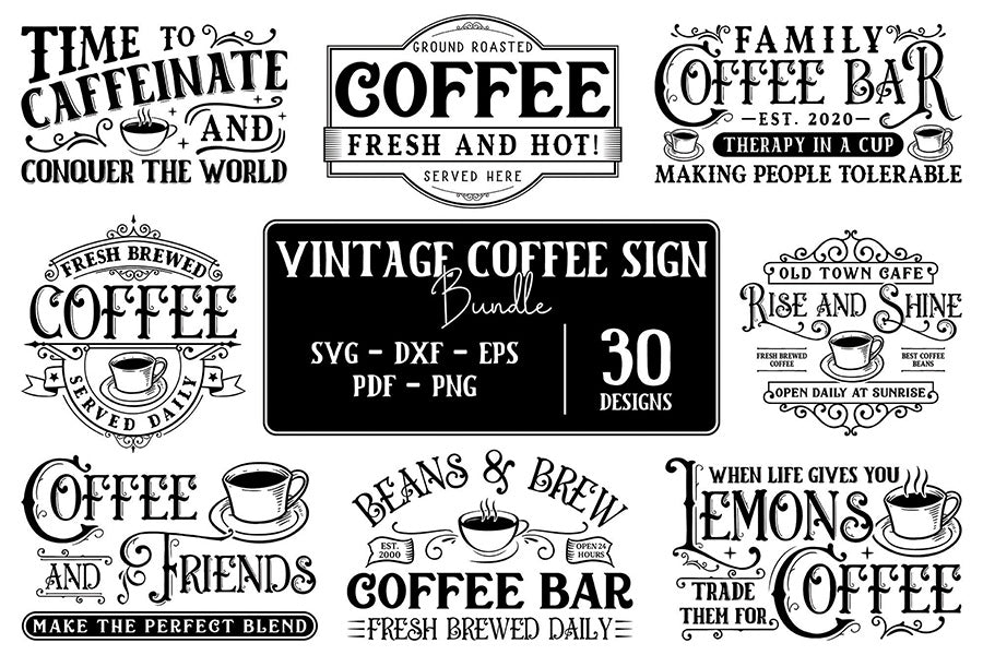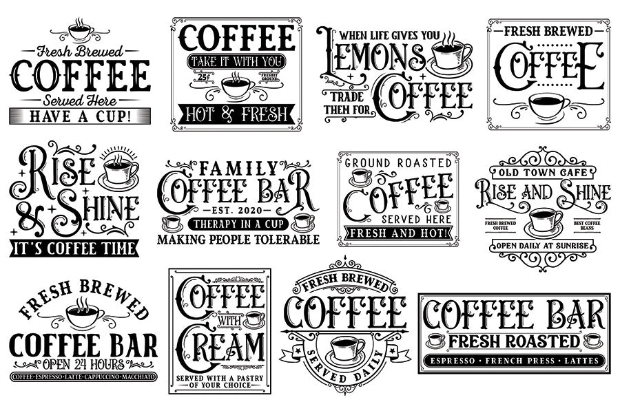 Purchase our "Vintage Coffee Sign SVG Bundle" and add a personalized touch in your coffee bar or farmhouse. This Bundle features 30 creative vintage sign designs that you can use for various decoration projects. Each design in the bundle is created with high-quality resolution, creative themes and beautiful quotes. Whether you're looking to adorn your walls, or make various coffee-related items, these versatile designs are perfect for DIY enthusiasts and design-savvy homeowners alike. Perfect for creating kitchen signs, shirts, and more for your favorite caffeine lover. Get the "Vintage Coffee Sign SVG Bundle" today and craft creative signs!