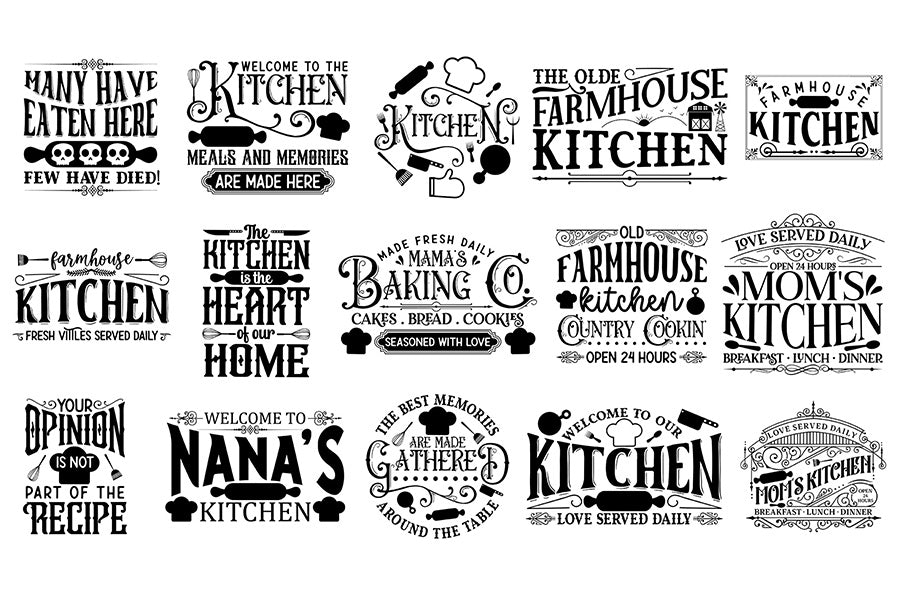 In this bundle, you will get 30 unique designs that are perfect for vintage kitchen décor projects. You can use them for creating vintage style signs, kitchen signs, wall decals, home signs, farmhouse signs, and more.
