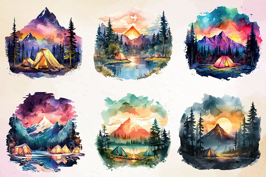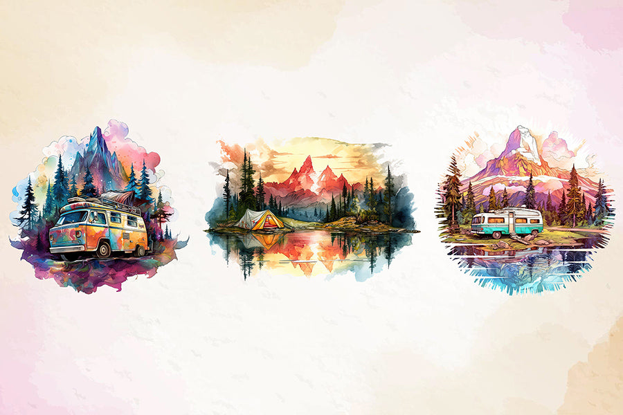 Looking to add a touch of adventure to your projects? Our Watercolor Camping Sublimation Clipart Bundle is just what you need! This unique collection features 09 hand-painted watercolor illustrations, including campfires, tents, mountains, and whimsical caravans. These lovely illustrations are perfect for t-shirts, mugs, bags, and more!
