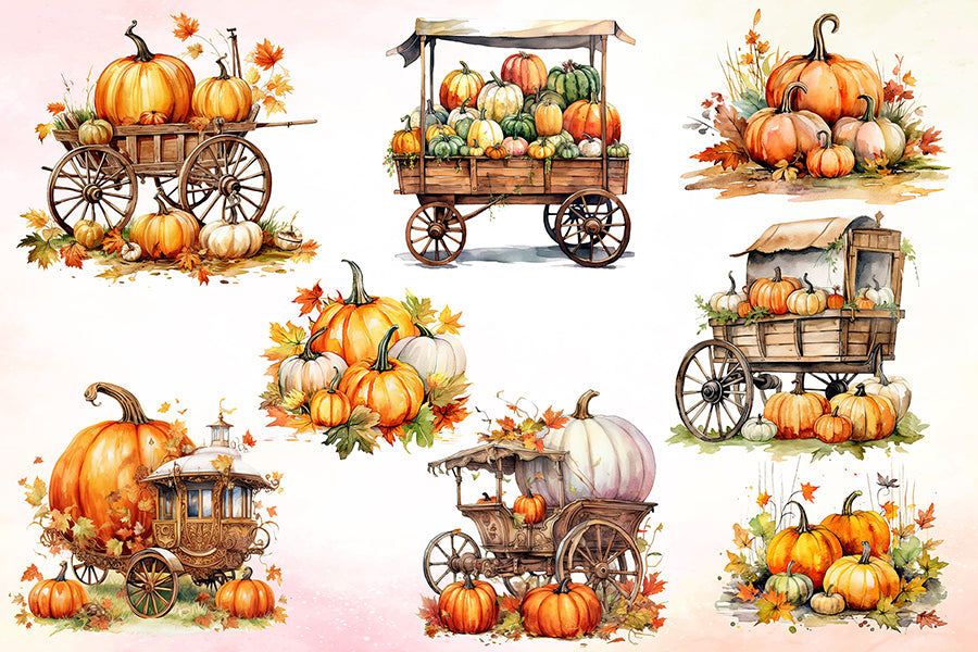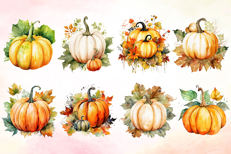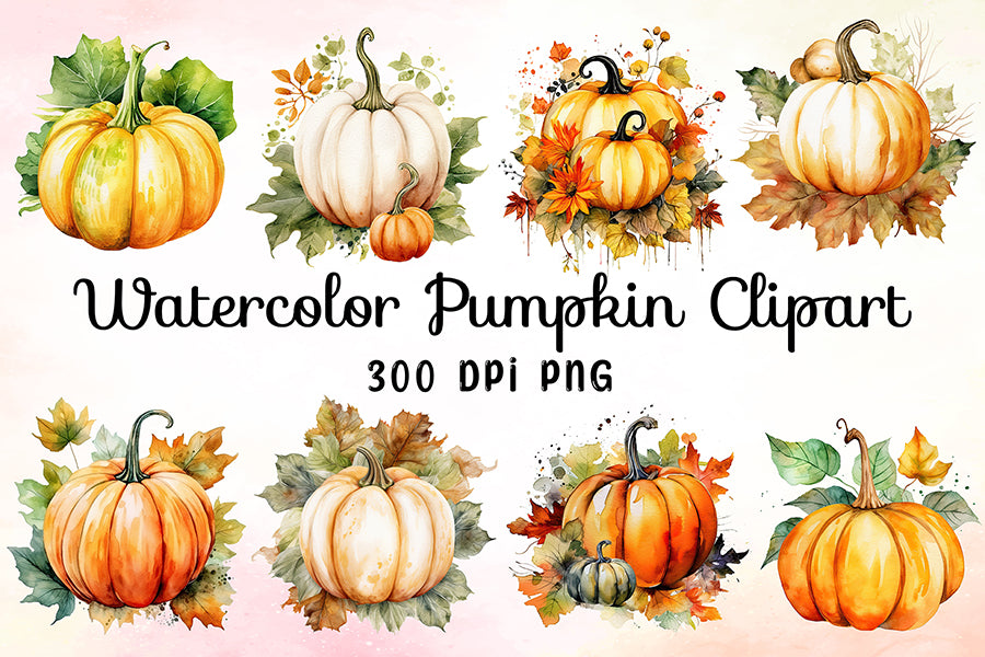 Watercolor Pumpkin Sublimation Clipart Bundle