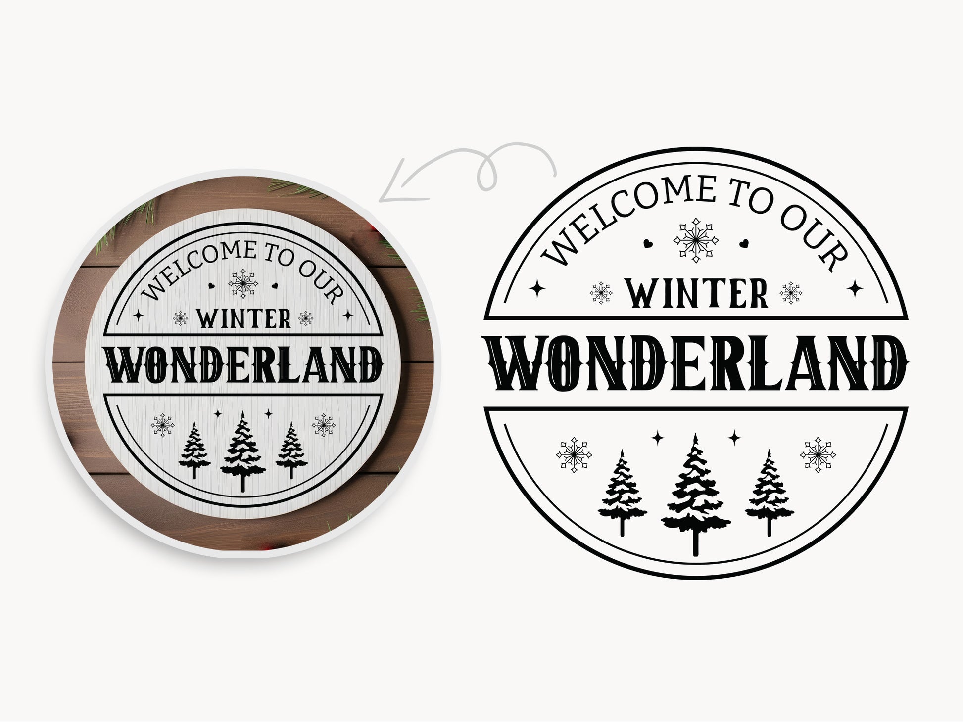 Welcome to Our Winter Wonderland Round Sign SVG is a charming design, perfect for adding a festive touch to your home décor, making it ideal for crafting beautiful wall signs, wreaths, or seasonal accents. Perfect for crafters and small business owners, the Winter Round Sign SVG includes whimsical typography and delightful winter-themed elements such as snowy evergreen trees, snowflakes, and sparkles. Made for Cricut, Silhouette, and other cutting machines, it’s easy to personalize and create a unique piece that reflects your winter spirit. Download the "Welcome to Our Winter Wonderland" design today and let the magic of winter fill your home or farmhouse!