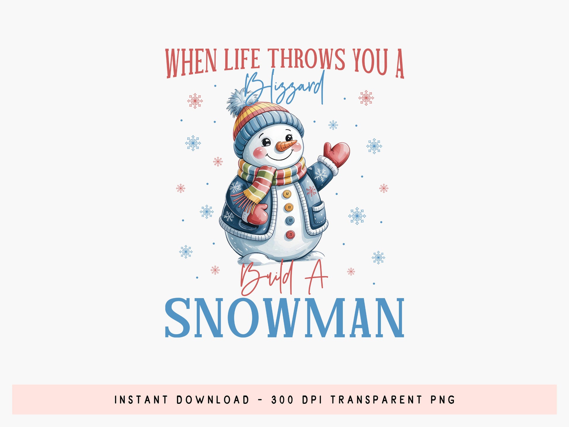 Explore When Life Throws You a Blizzard - Christmas Snowman PNG! This delightful and festive design showcases a jolly snowman, ready to sprinkle some cheer into your winter festivities.